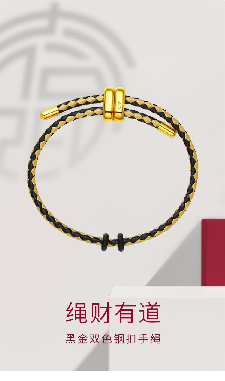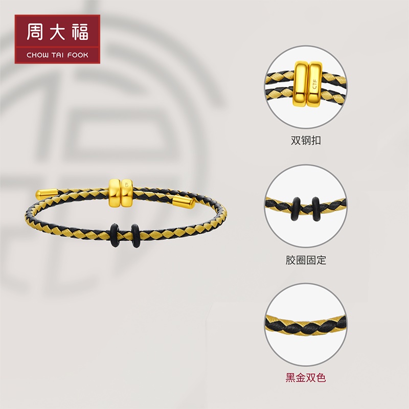 周大福 Черное золото двойное стальное пряжка для рук веревочная токсис114