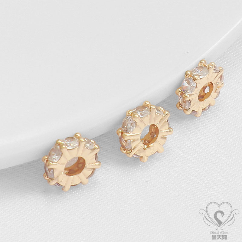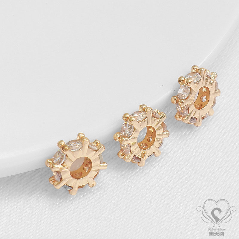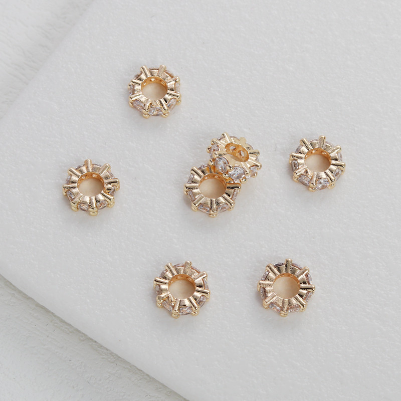 Бусины с цирконом, колесо, ожерелье, аксессуар, аксессуары, 14 карат, золотой цвет, со сквозным отверстием, DIY