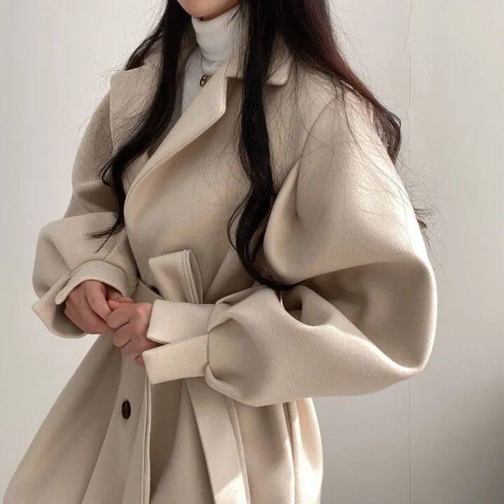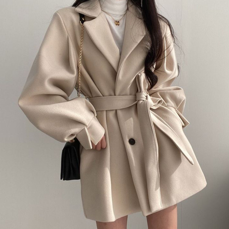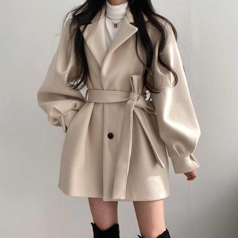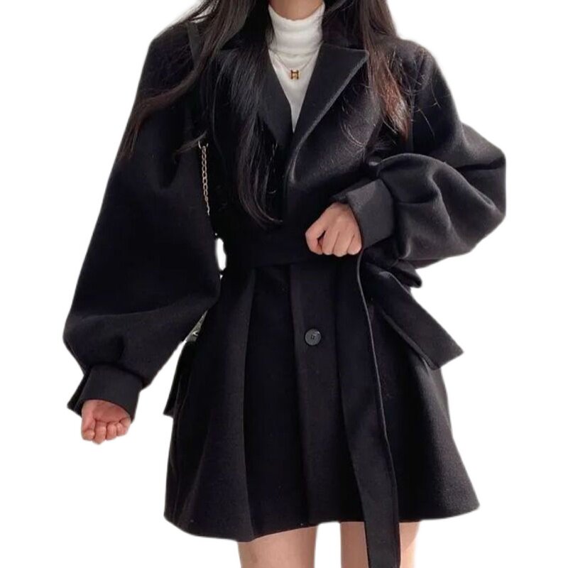 Черный корсет, шерстяное пальто, короткая куртка, демисезонный костюм, подходит для подростков, изысканный стиль, свободный крой