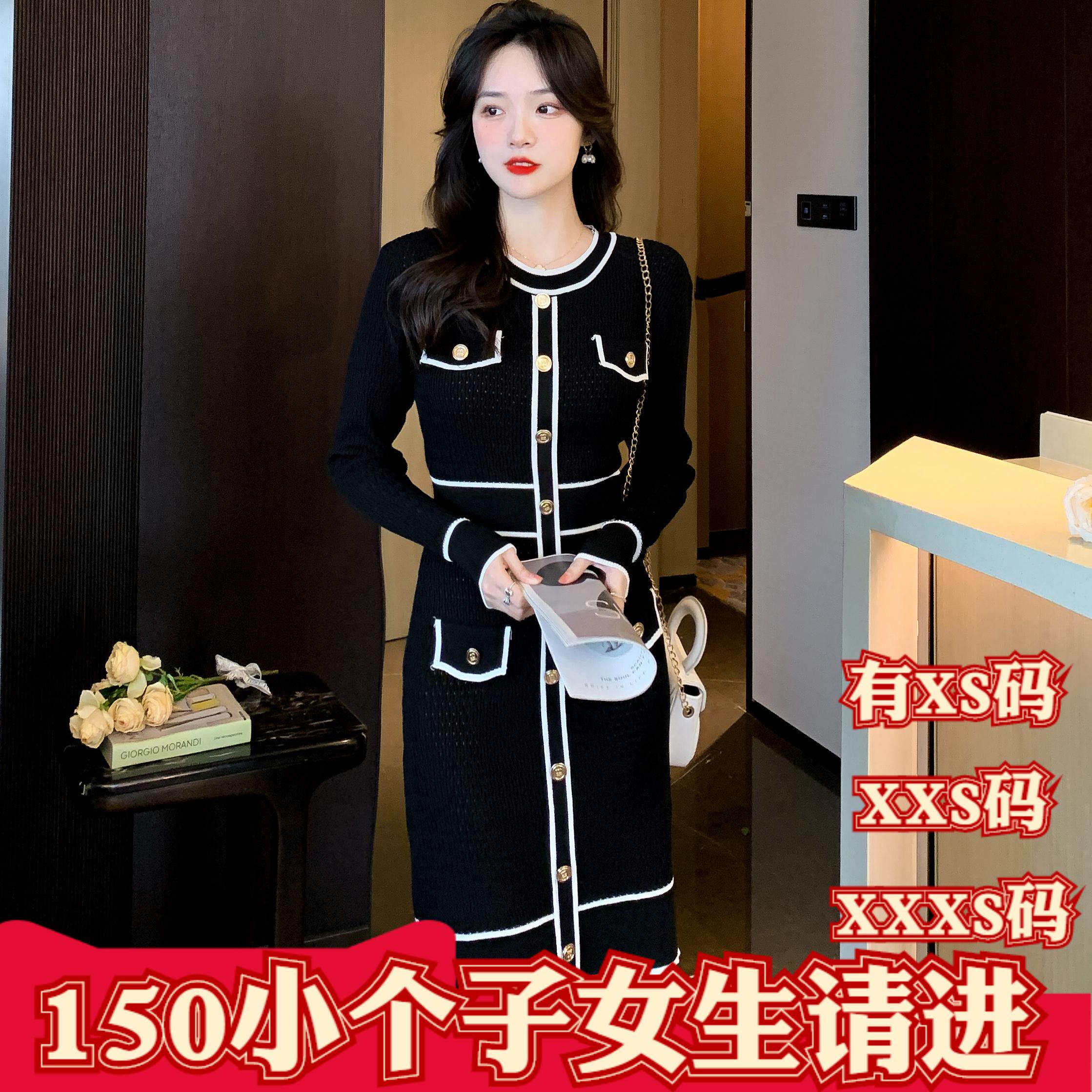 Осеннее трикотажное платье, свитер, подходит для подростков, в стиле Шанель, А-силуэт