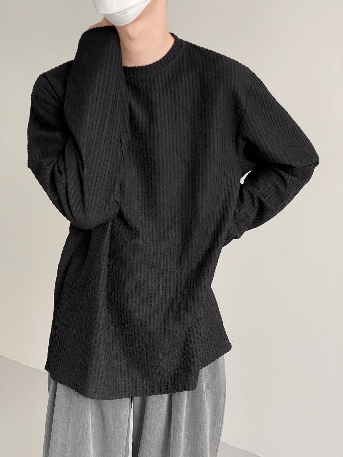 Базовая приятная телу брендовая утепленный лонгслив для отдыха с круглым воротником, осенний, оверсайз