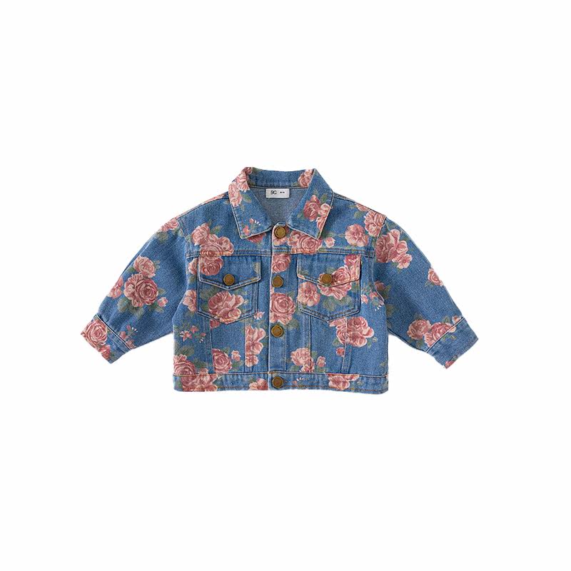 Джинсовая детская осенняя куртка для отдыха, в цветочек, в западном стиле