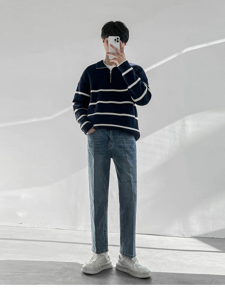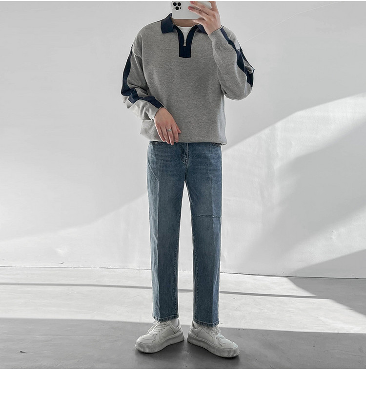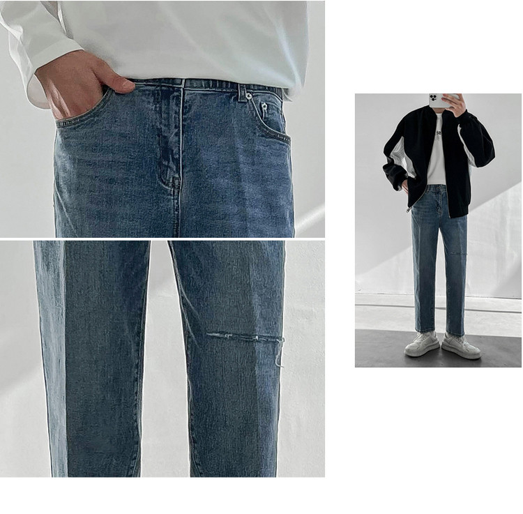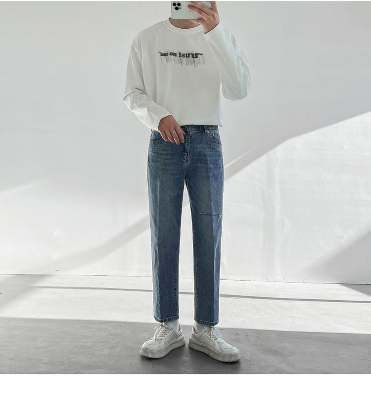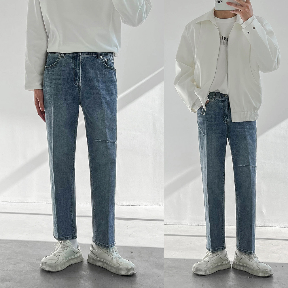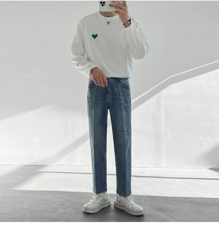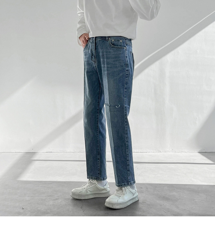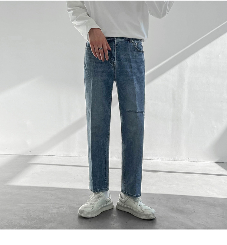 Tide, демисезонные штаны, универсальные джинсы, в корейском стиле, свободный прямой крой
