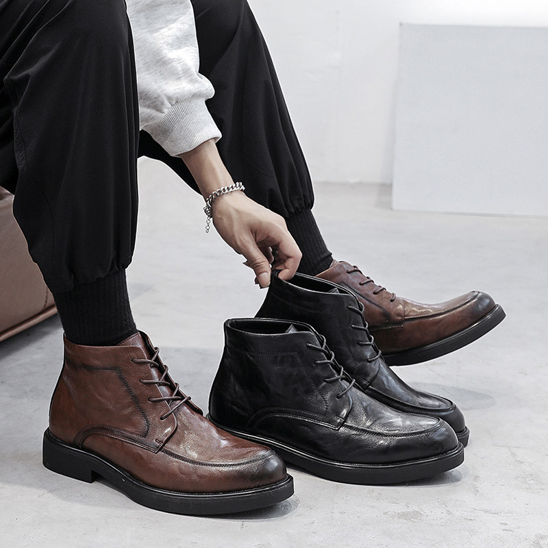 Martens, зимние универсальные короткие сапоги в английском стиле, из натуральной кожи, в британском стиле