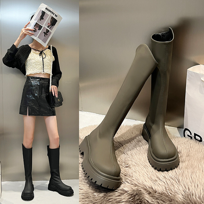Высокие сапоги, высокие зеленые ботинки на платформе, большой размер, по фигуре