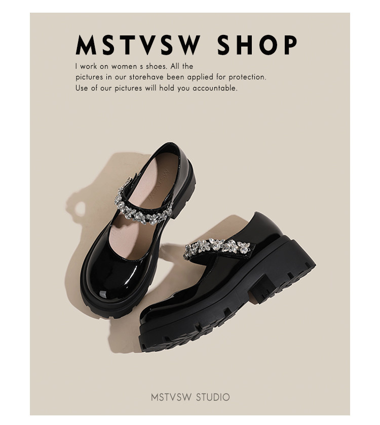 ◆Специальное предложение◆Кожаные туфли Мэри Джейн со стразами
