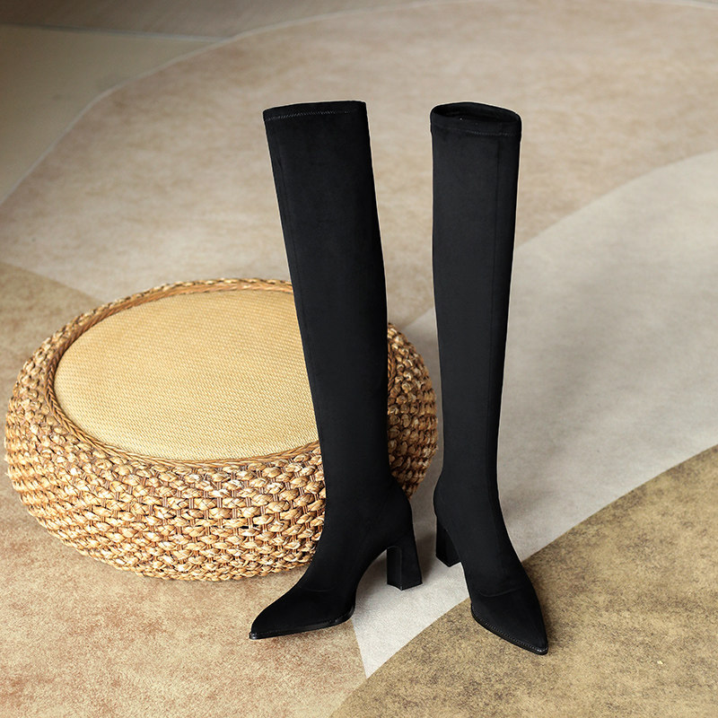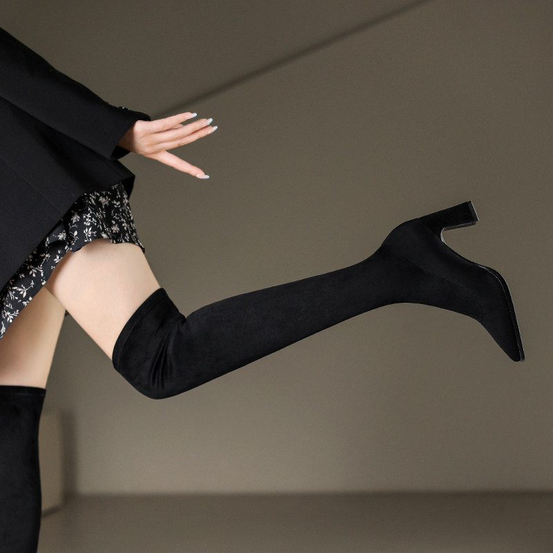 一代佳人 Демисезонные высокие эластичные высокие сапоги с заостренным носом, в корейском стиле