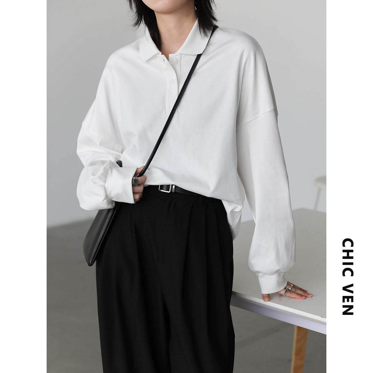Осенняя футболка для отдыха, оверсайз, воротник поло