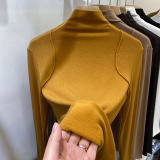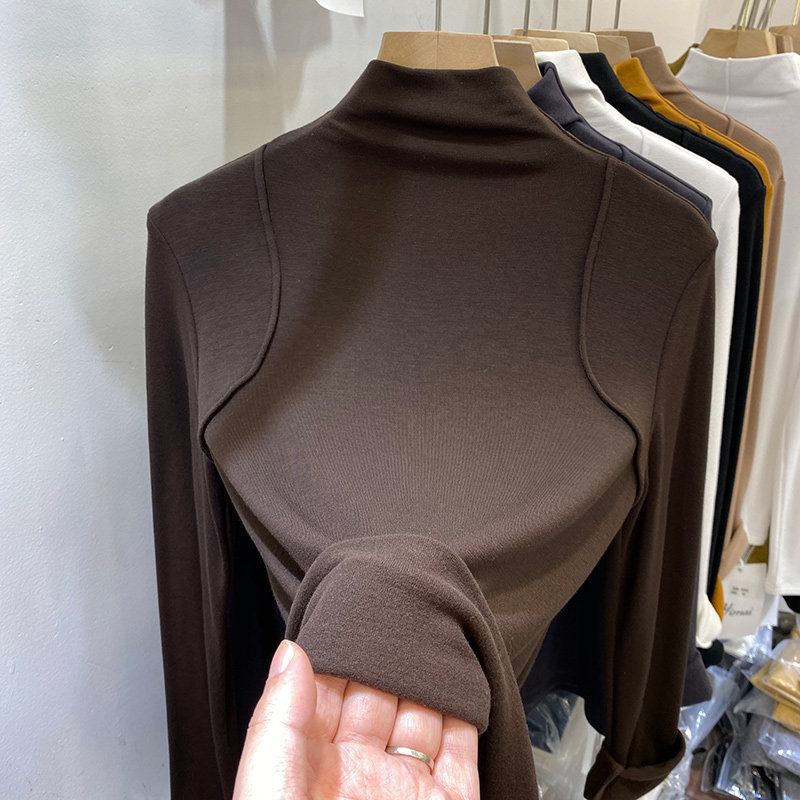 Бархатный демисезонный приталенный приятный телу лонгслив, высокий воротник