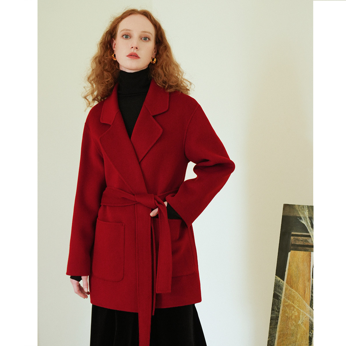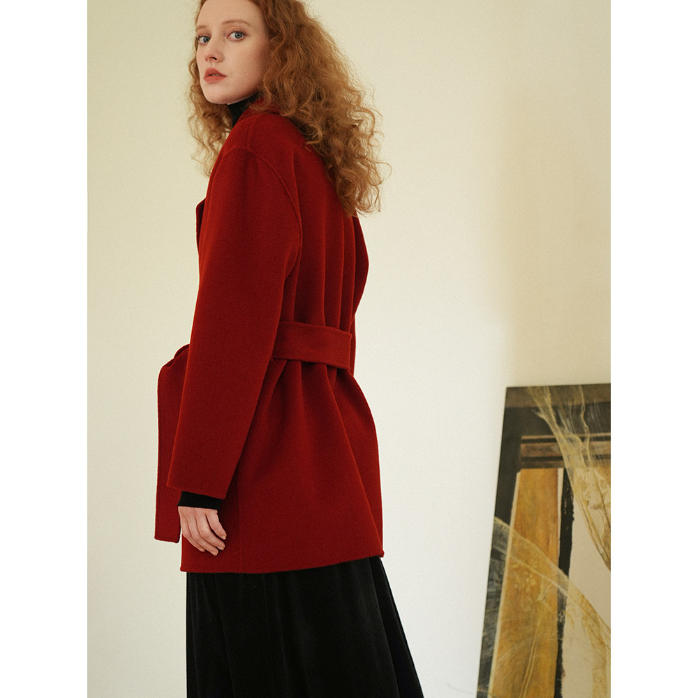 Классический красный приталенный пиджак классического кроя, шерстяной корсет, короткое двусторонное шерстяное пальто, свободный крой