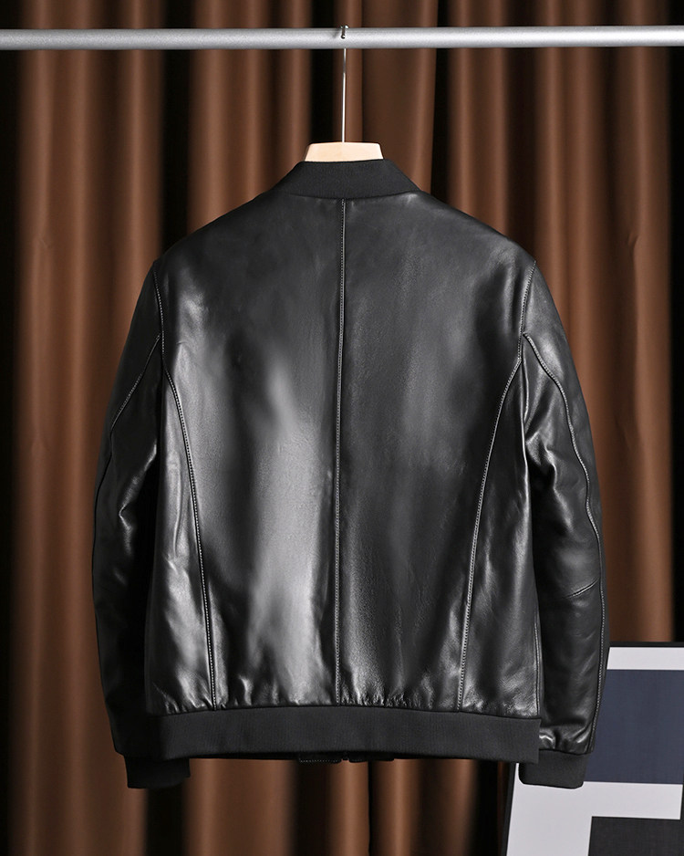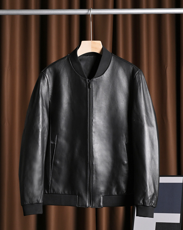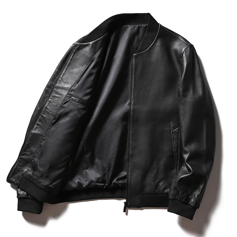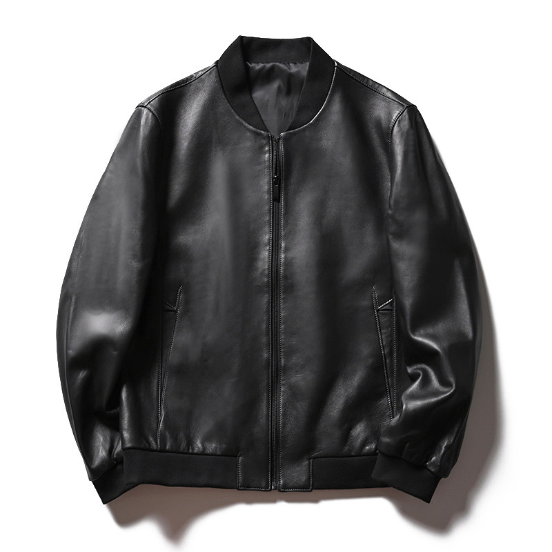 Бейсбольная короткая осенняя мужская куртка, из натуральной кожи