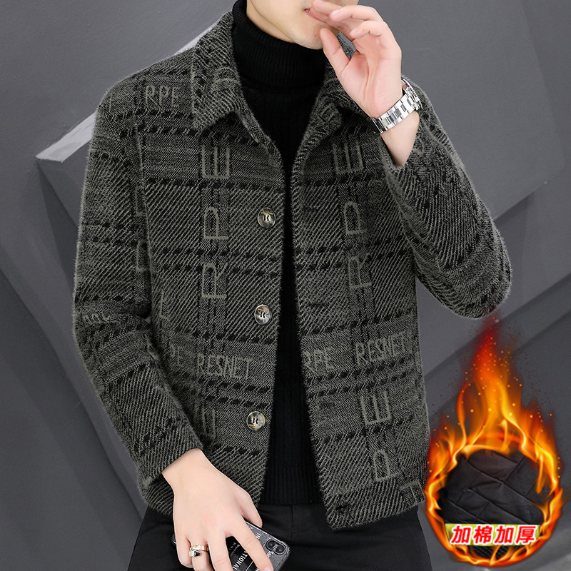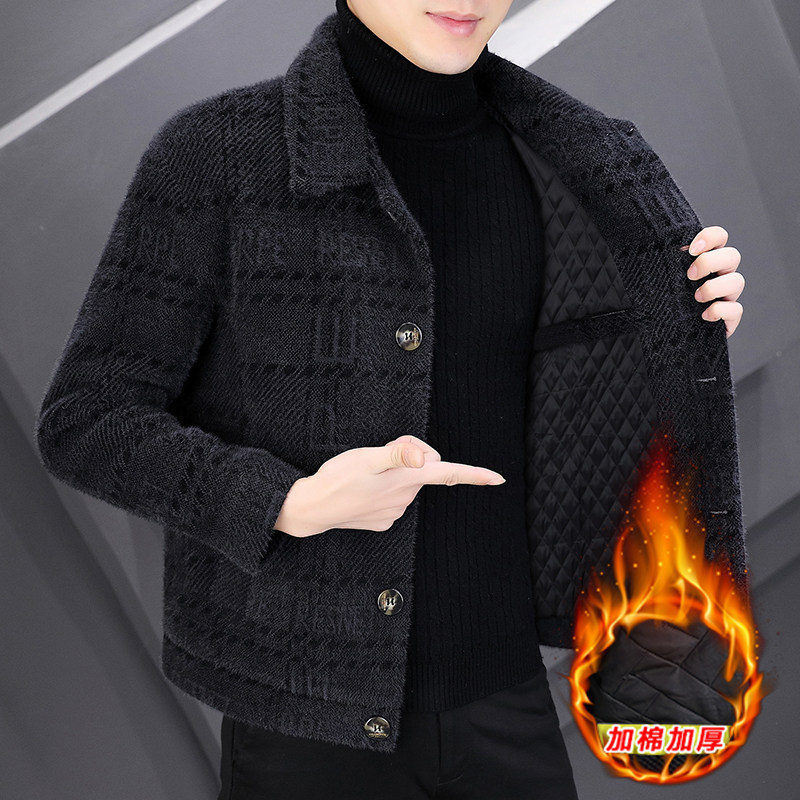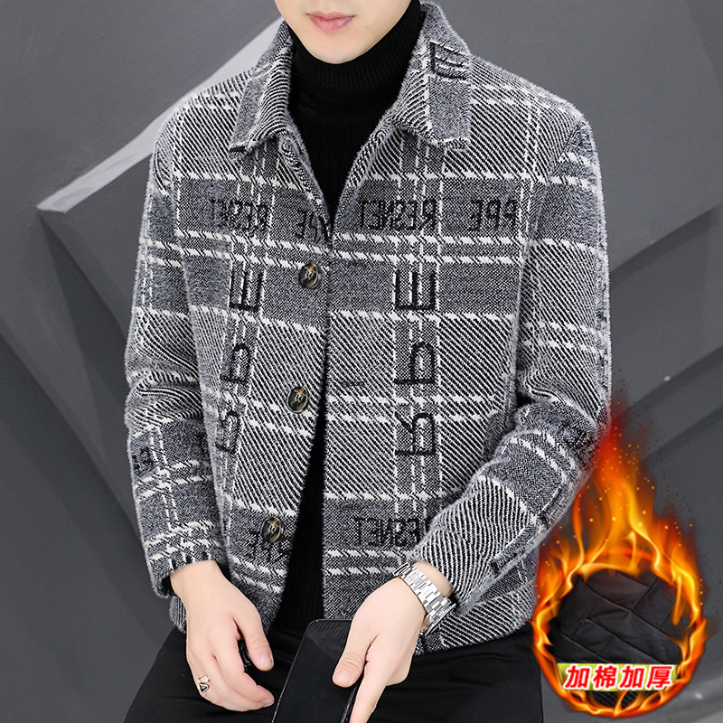Мужская демисезонная бархатная куртка, шерстяное пальто, плащ, 2024 года, увеличенная толщина