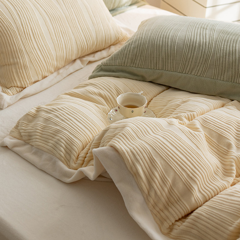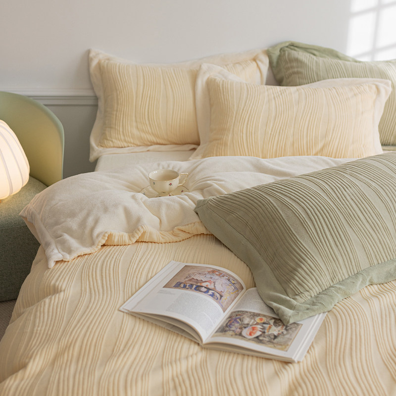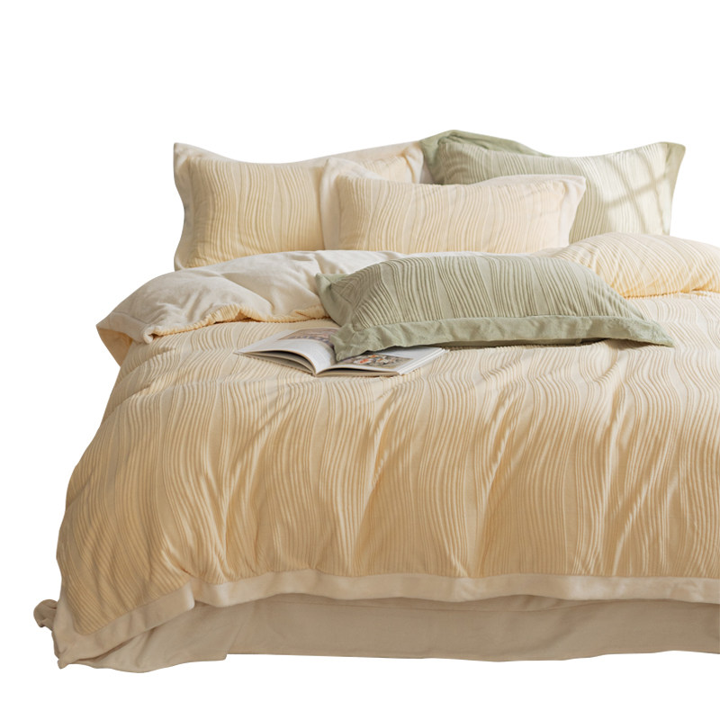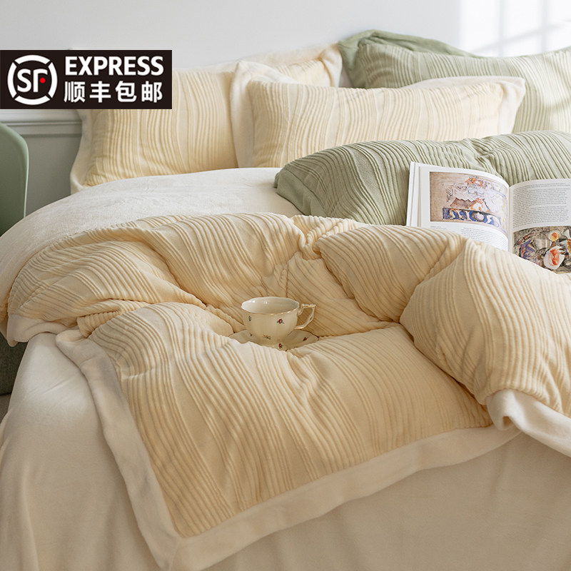 Бархатные джинсы с начесом, коралловый комплект, двусторонний бархатный пододеяльник, фланелевая простыня на флисовой подкладке, покрывало, 4 предмета