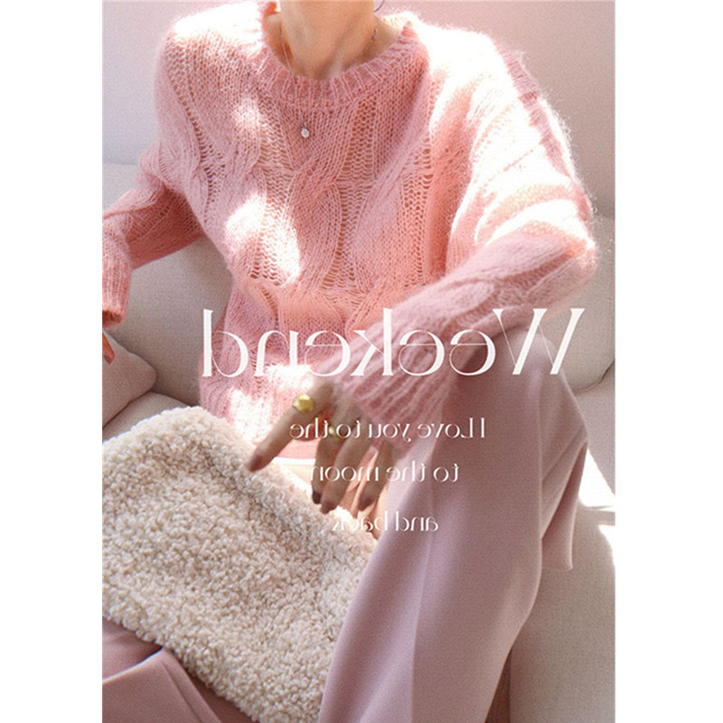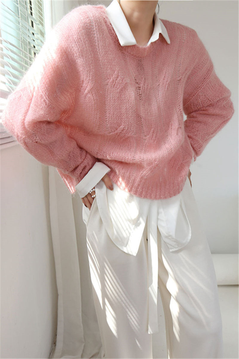 Розовый демисезонный трикотажный свитер, французский стиль, свободный крой, изысканный стиль