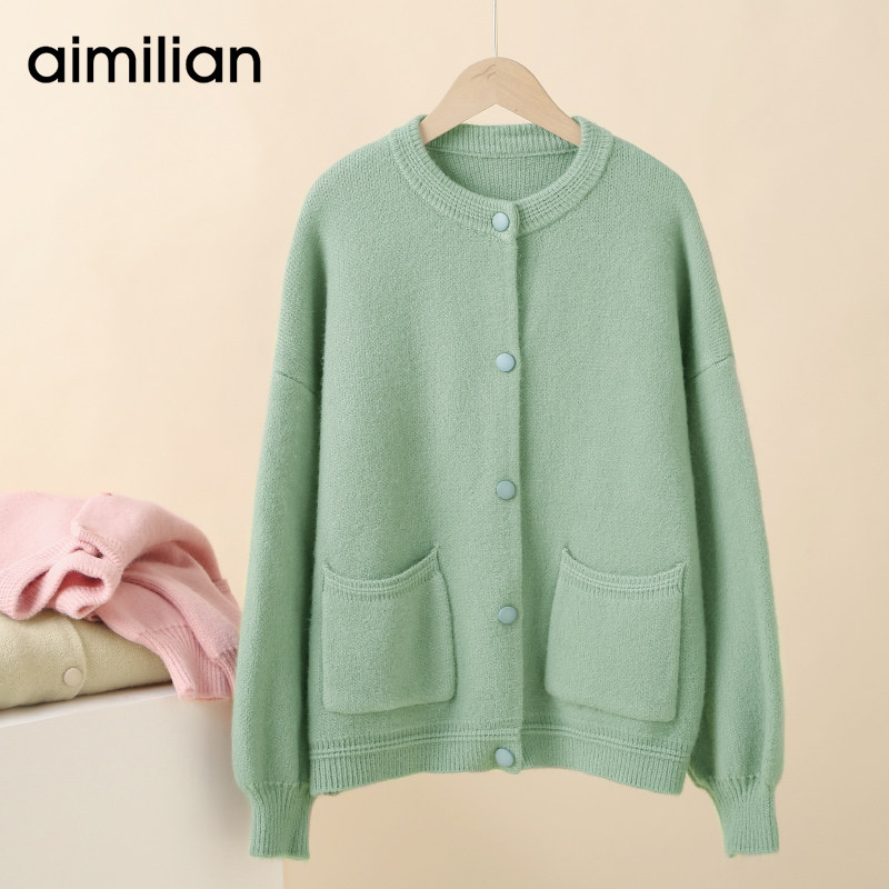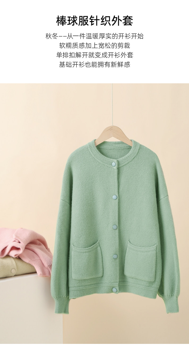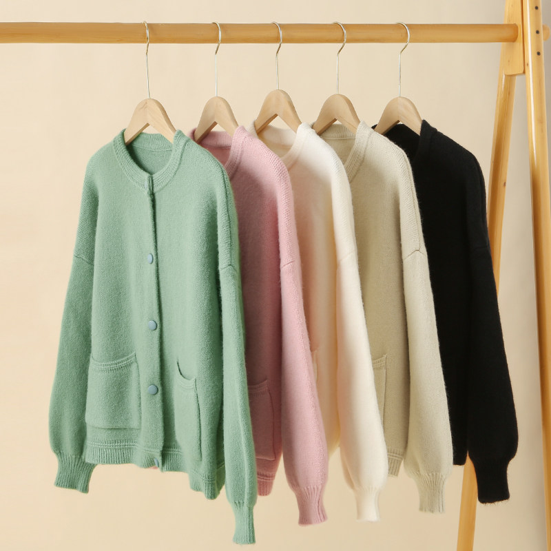 Трикотажный демисезонный кардиган с круглым воротником, цветной свитер, куртка, лонгслив, оверсайз