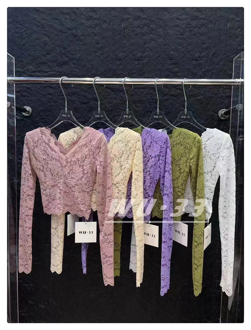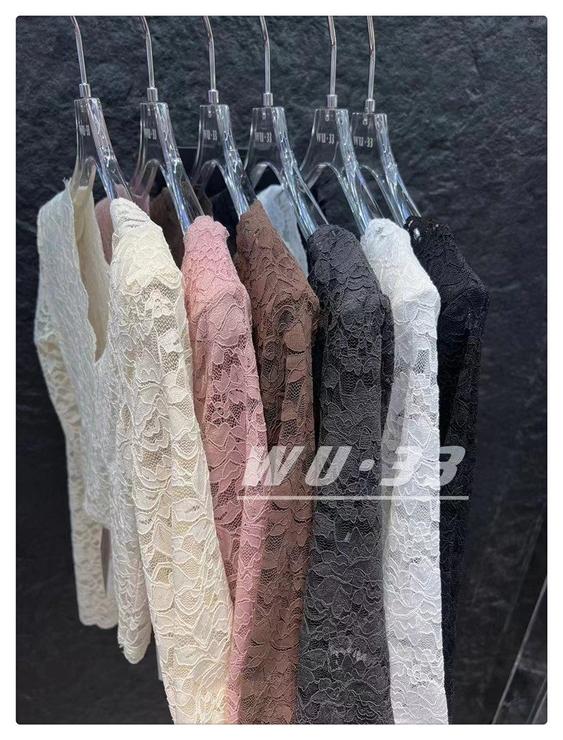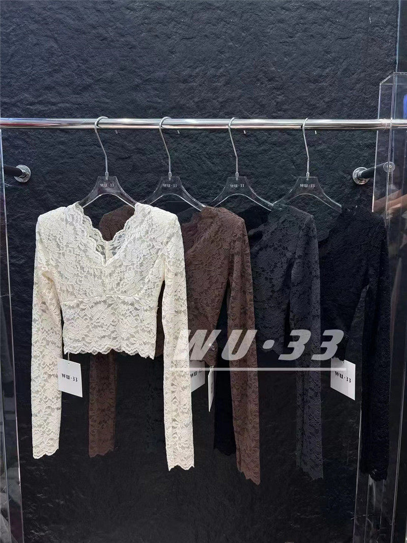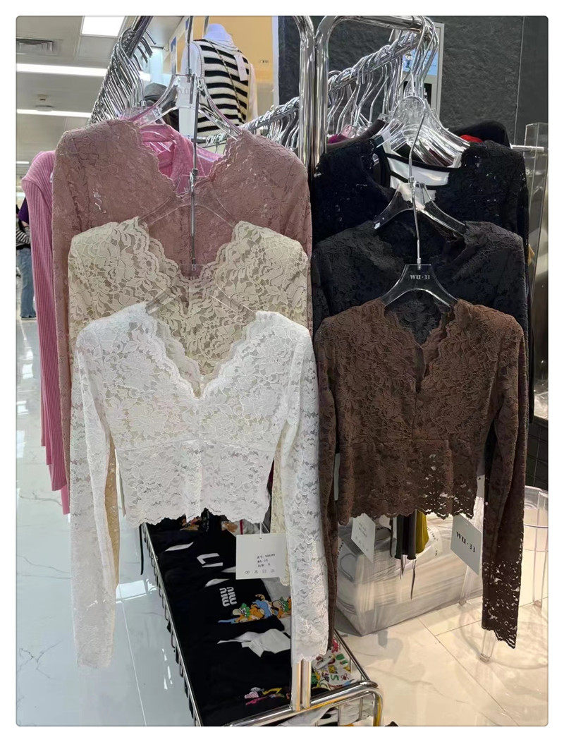 Демисезонный кружевной базовый приятный телу приталенный товар, французский стиль, V-образный вырез, в западном стиле, подходит для подростков
