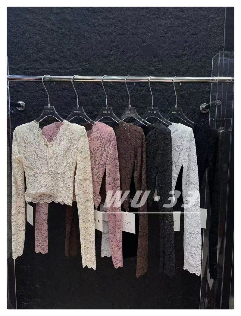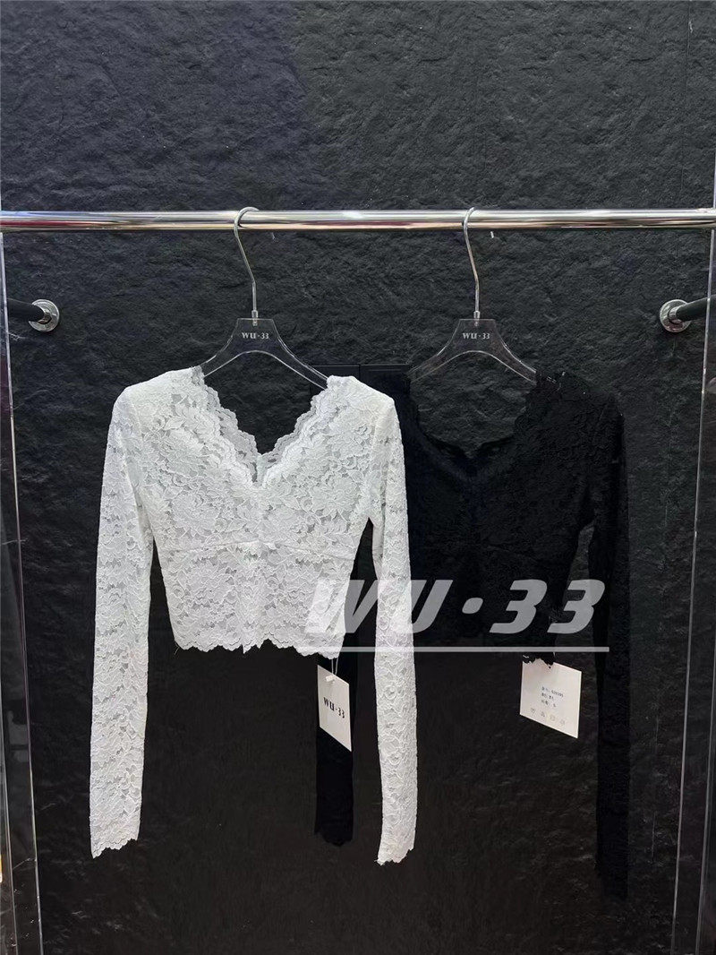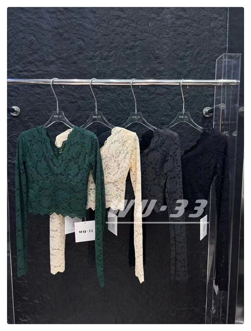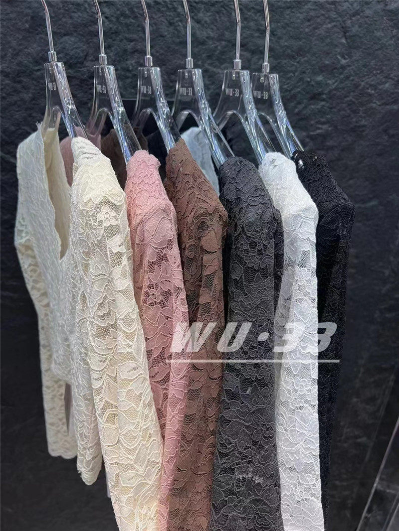 Демисезонный кружевной базовый приятный телу приталенный товар, французский стиль, V-образный вырез, в западном стиле, подходит для подростков