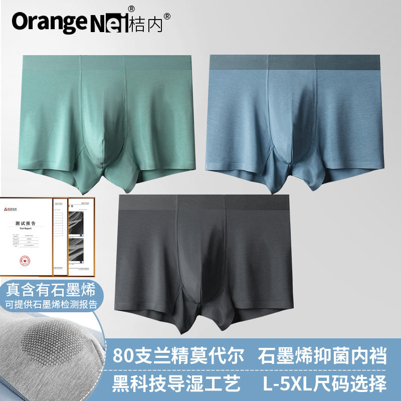 Мужское нижнее белье для оранжевого 80 модального графена внутренней шестерни антибактериальной боксерские штаны [3 упаковки] 9956