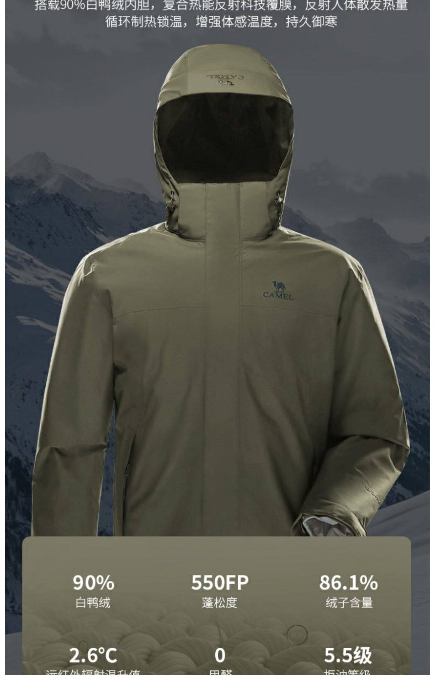 Куртка, водонепроницаемый альпинистский вкладыш с пухом, «три в одном», увеличенная толщина