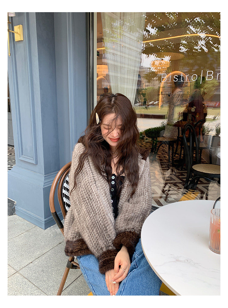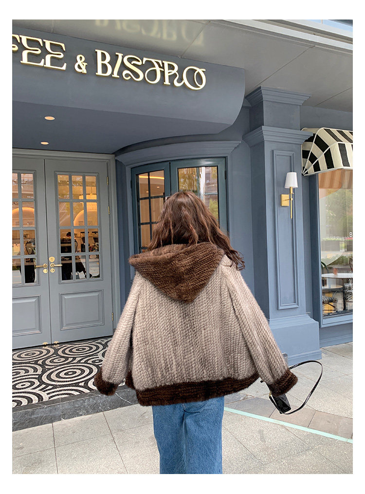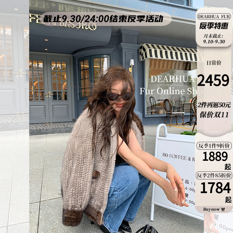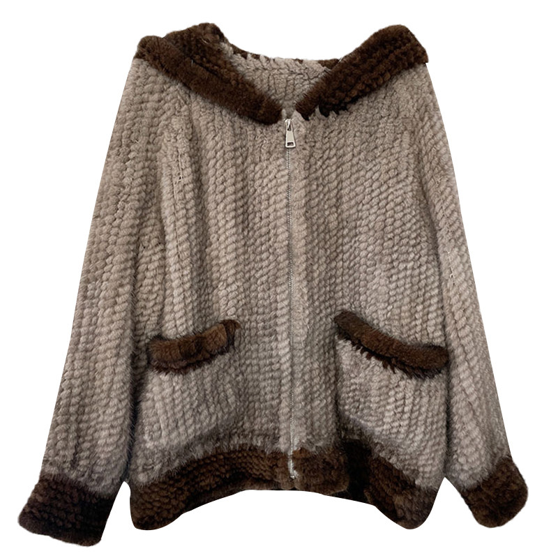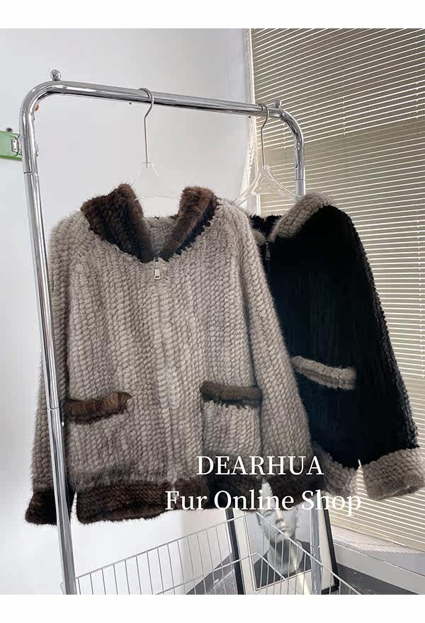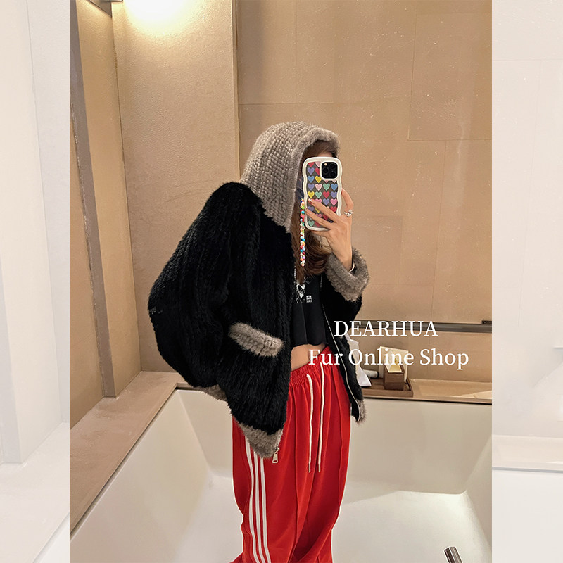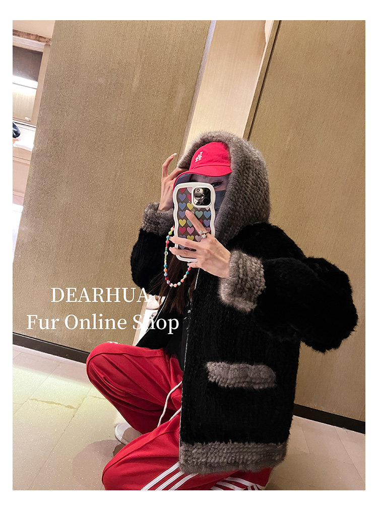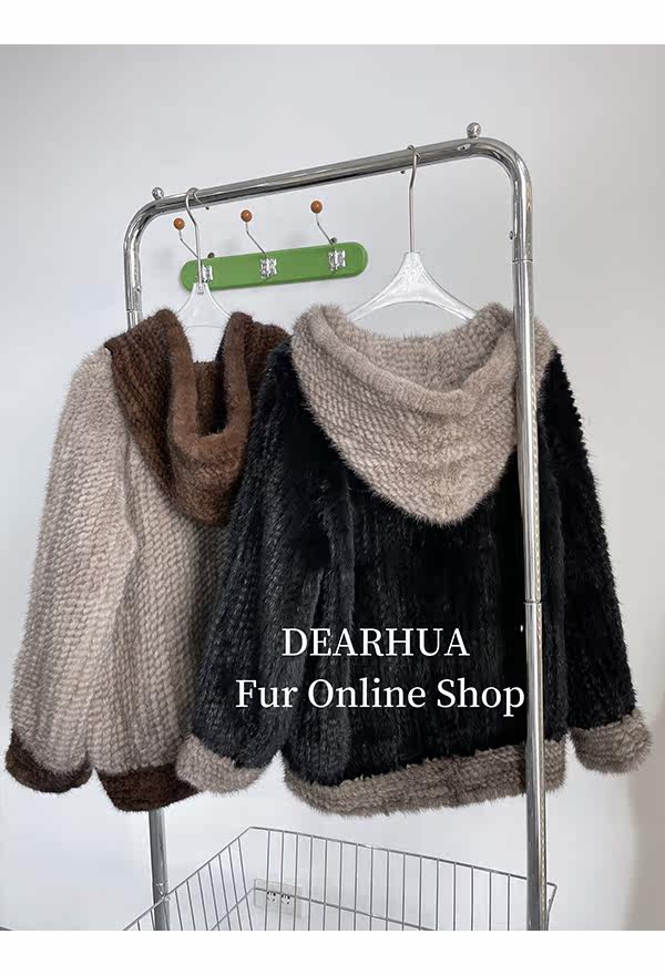 Dearhua xiaohua's "Milk Tea" Импортированный водяной норковая норка сплетен меховой пальто грудь норкка для самок капюшона