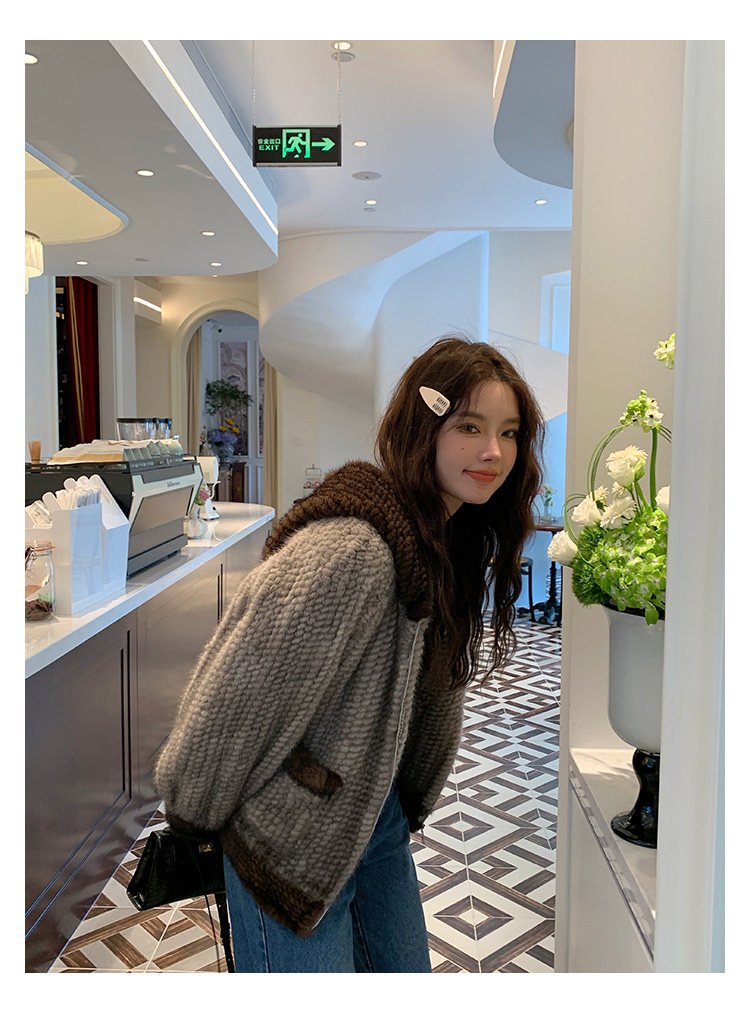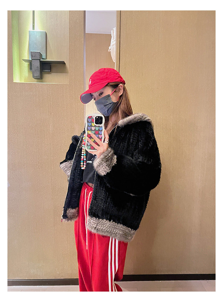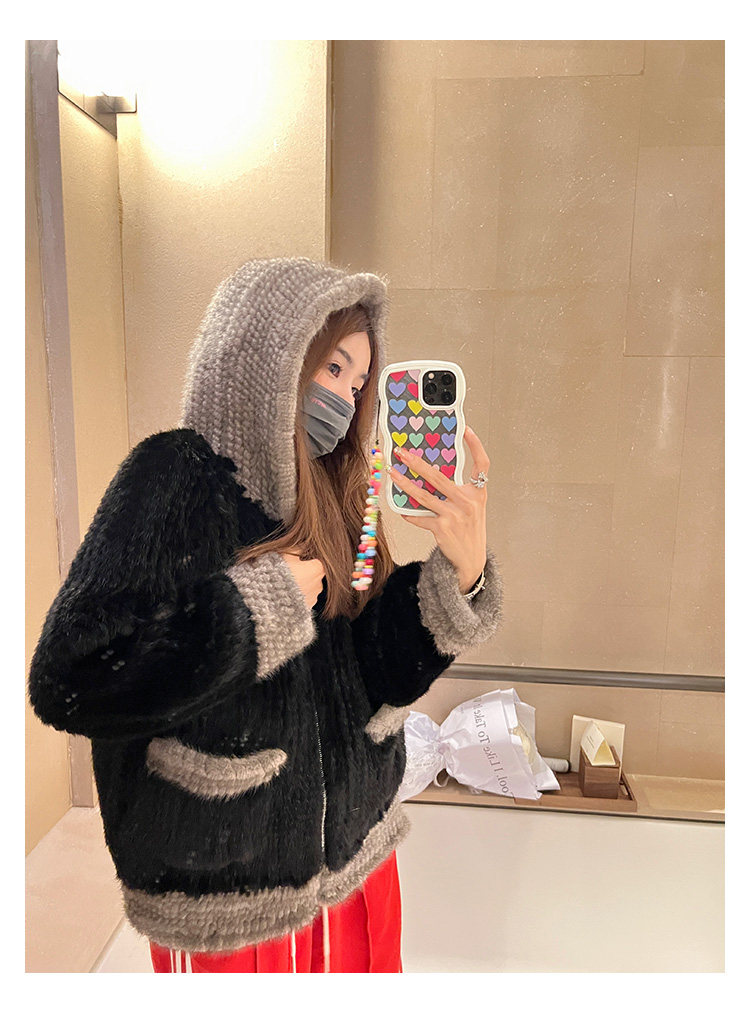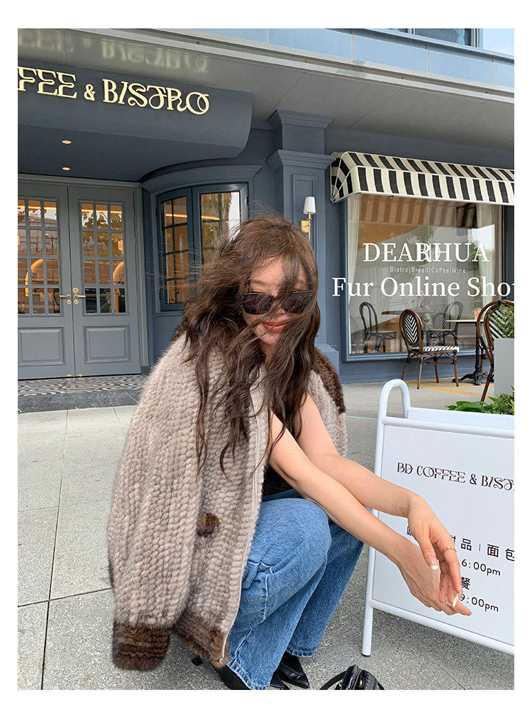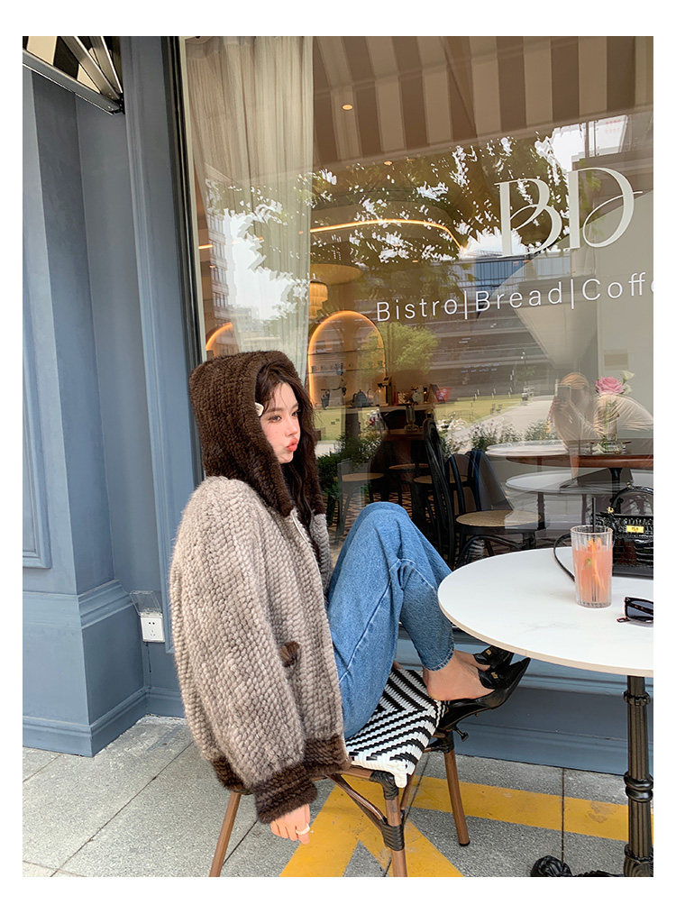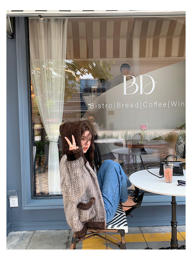 Dearhua xiaohua's "Milk Tea" Импортированный водяной норковая норка сплетен меховой пальто грудь норкка для самок капюшона