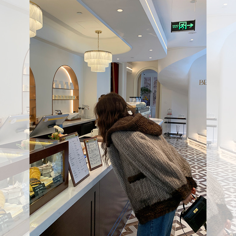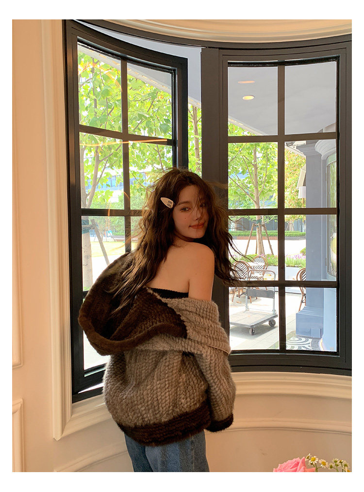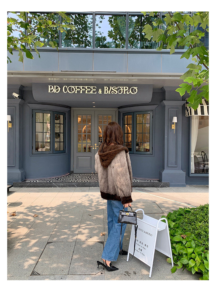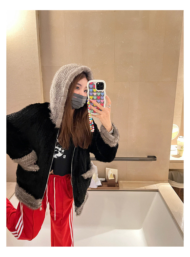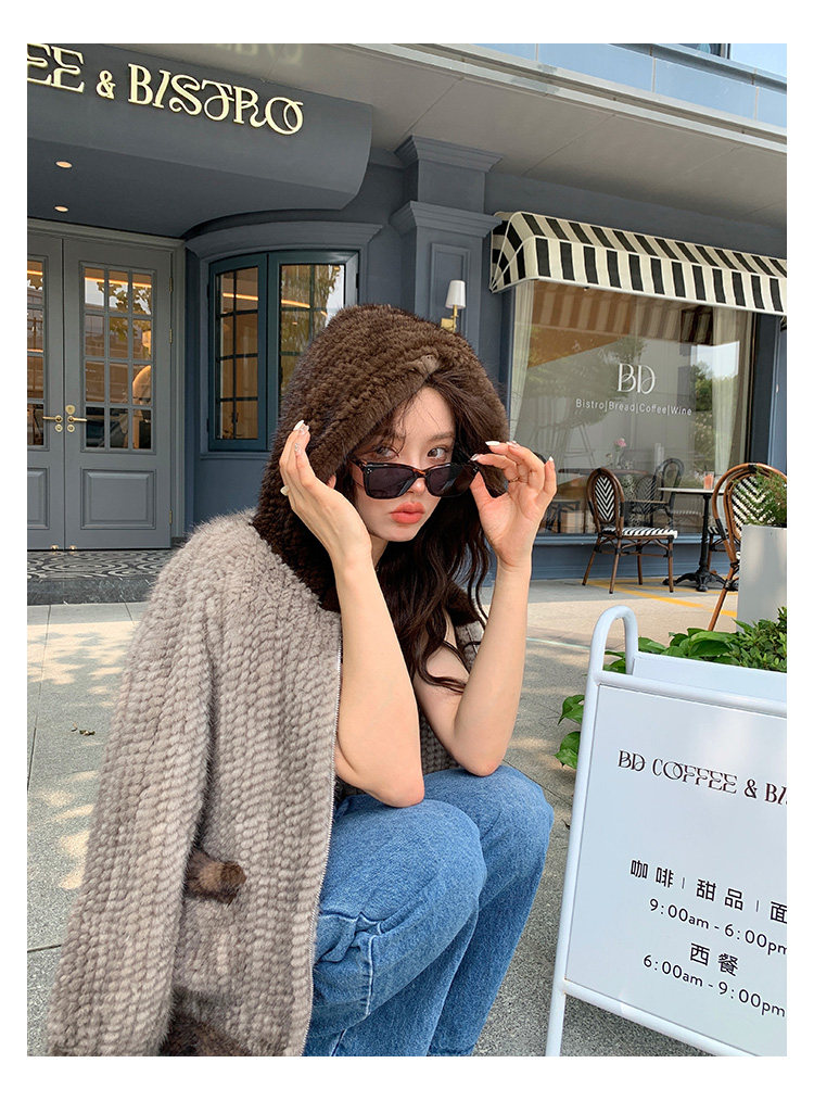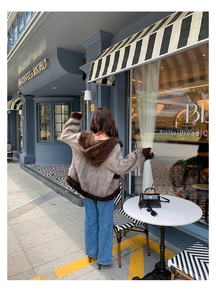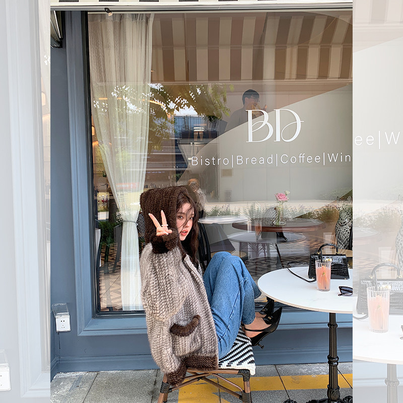 Dearhua xiaohua's "Milk Tea" Импортированный водяной норковая норка сплетен меховой пальто грудь норкка для самок капюшона