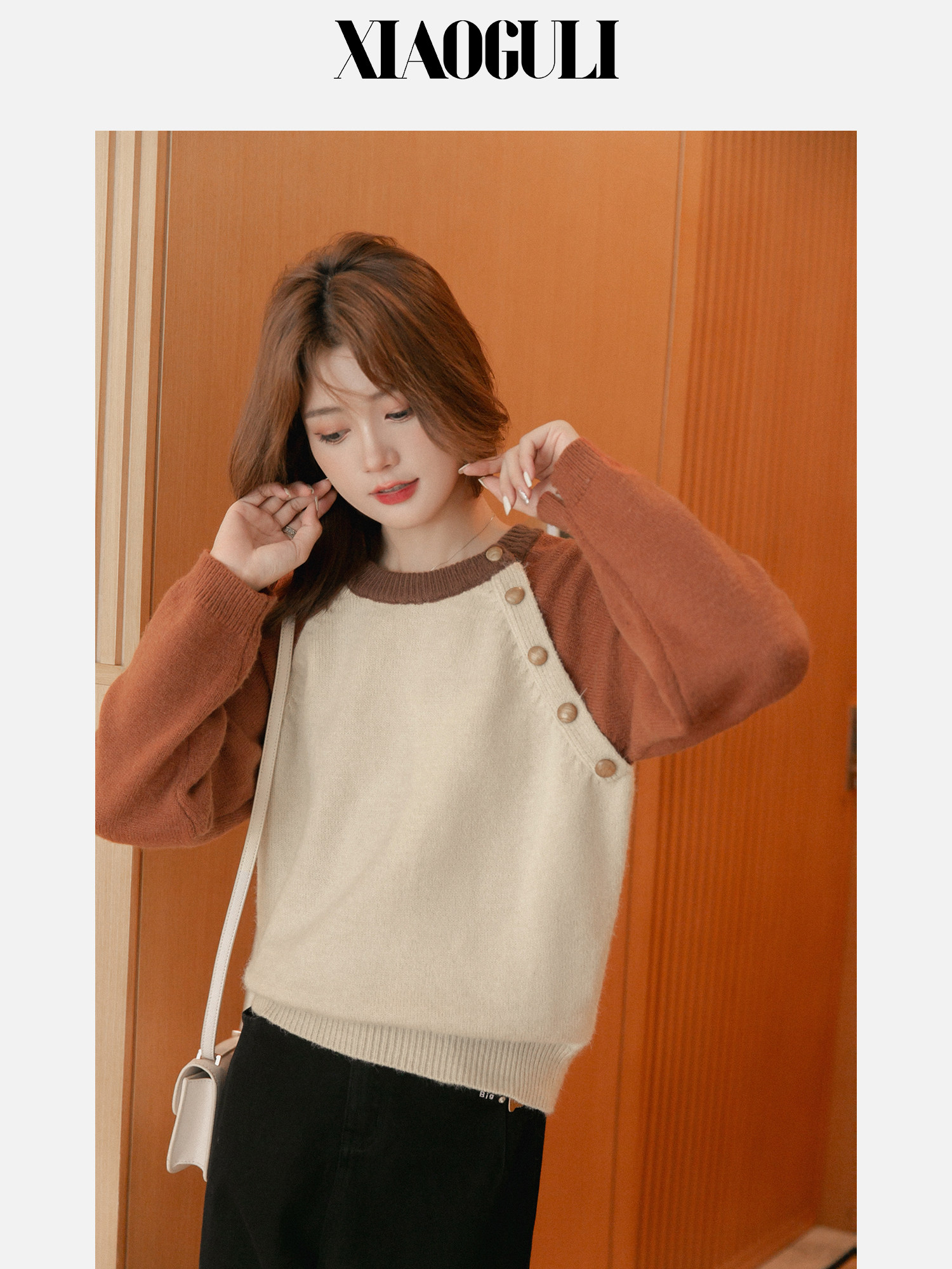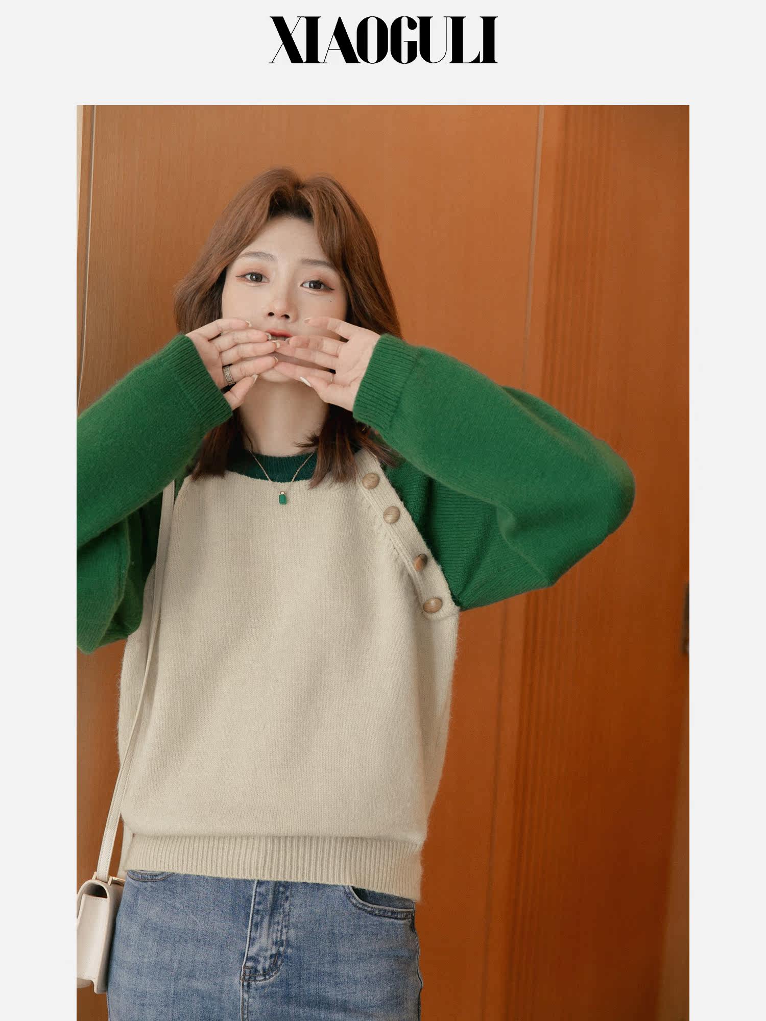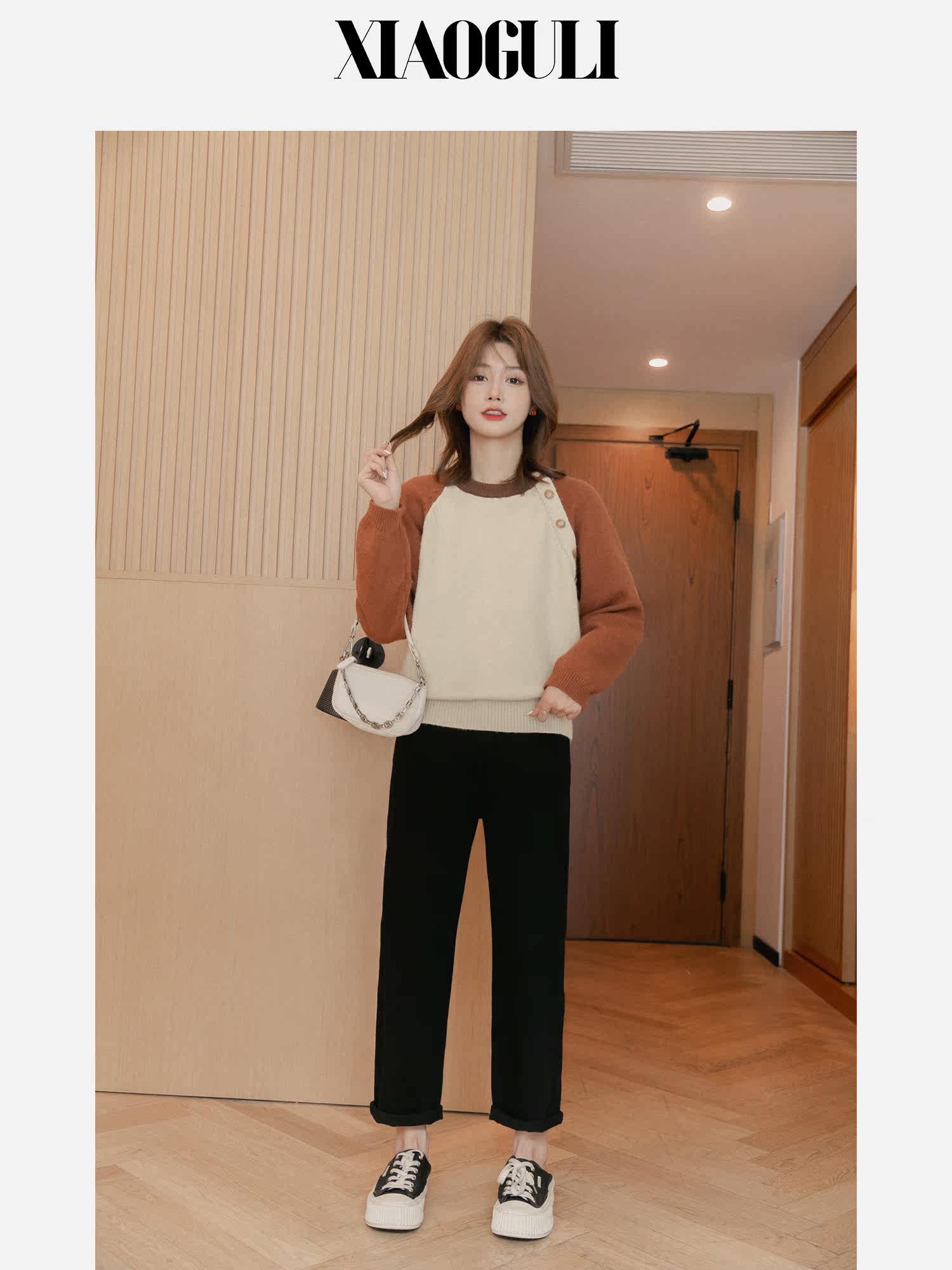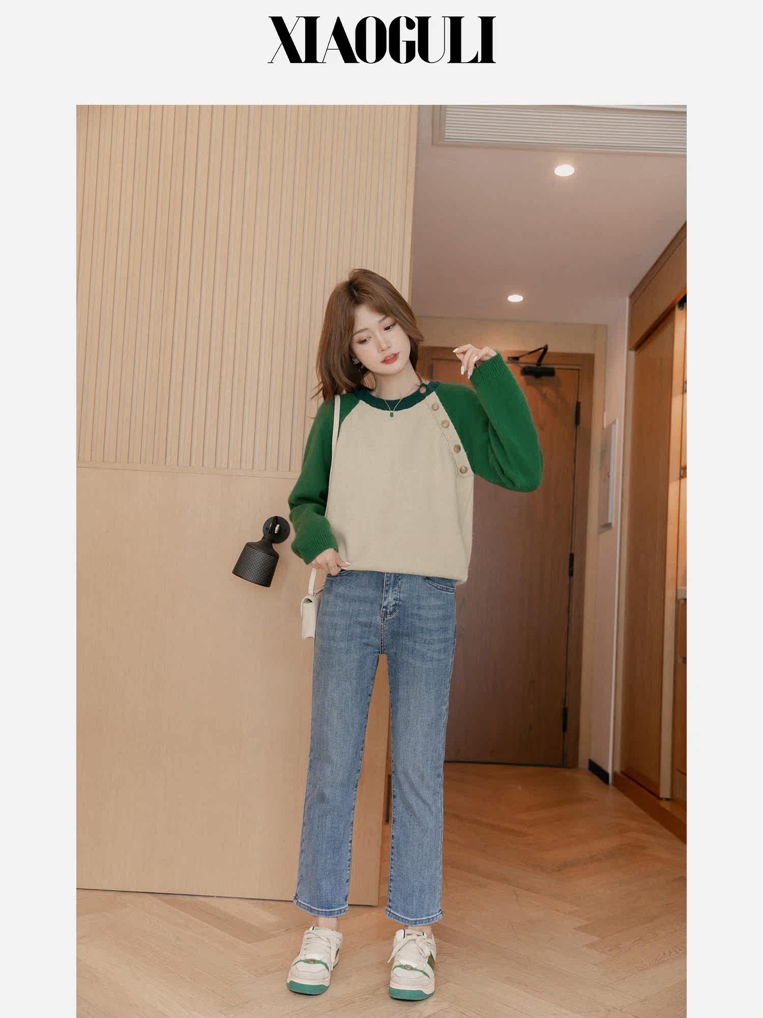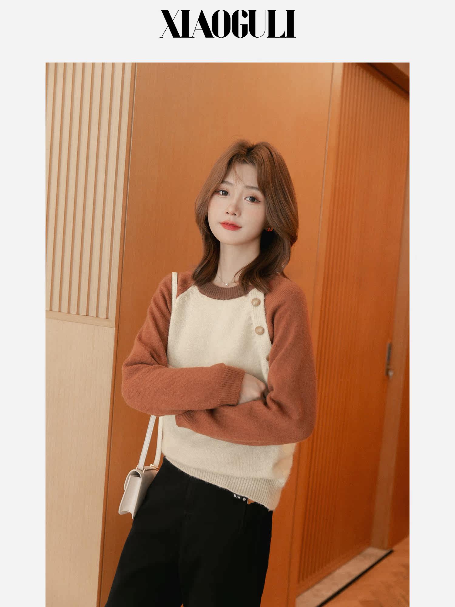 Дизайнерский осенний короткий модный свитер с круглым воротником, тренд сезона, коллекция 2022, оверсайз, свободный крой, по фигуре, подходит для подростков