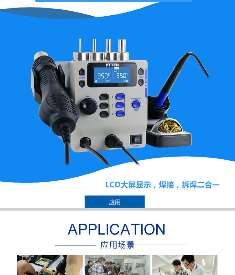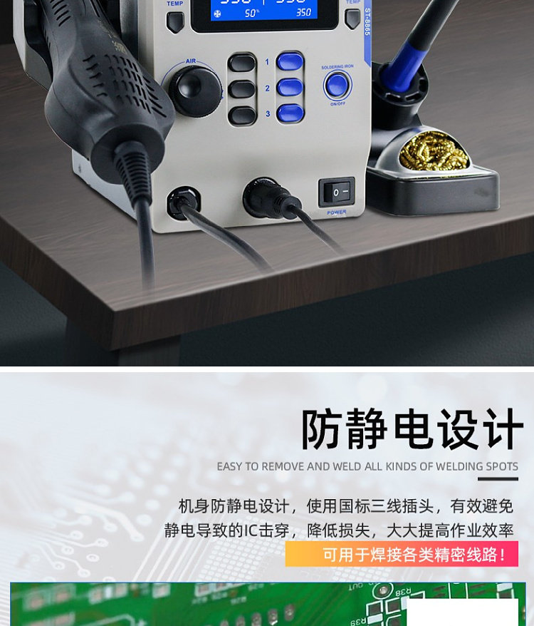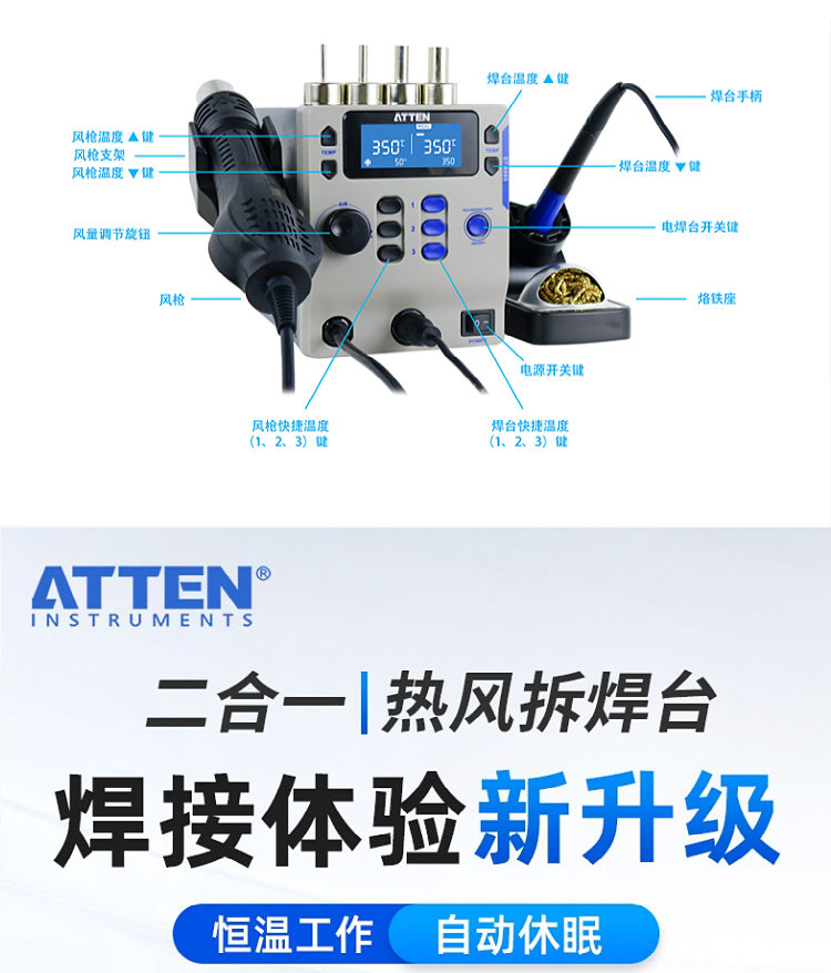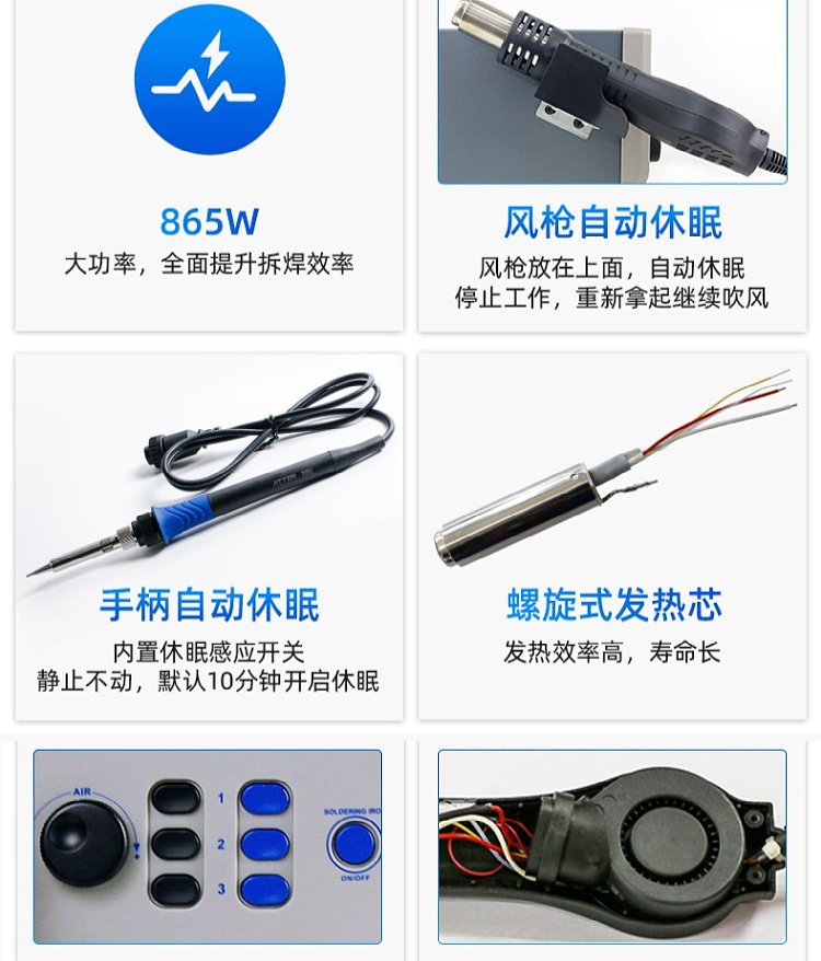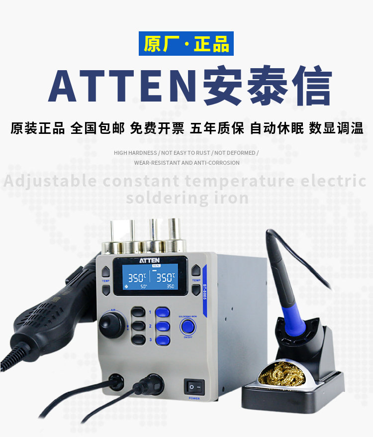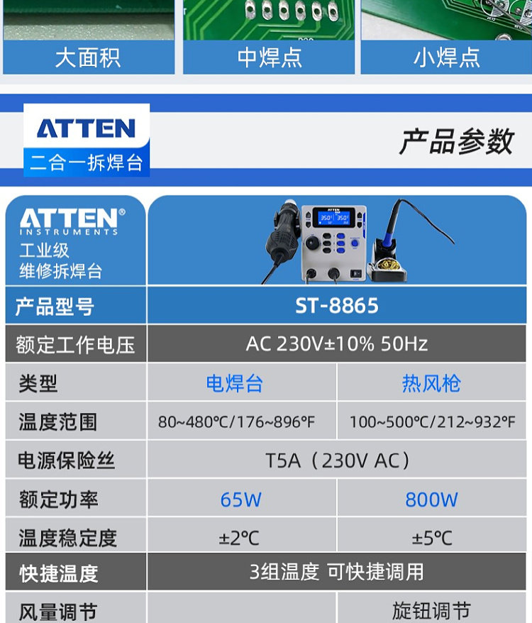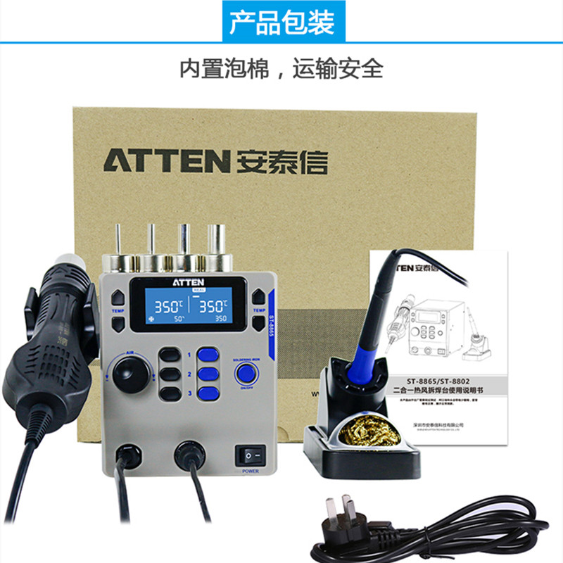 Antaixin ST-8865 Двухцелевое число, показывающее платформу сварки с горячим воздушным оружием электрический паяльный железо с двумя в-температуру и неактивная высокая мощность