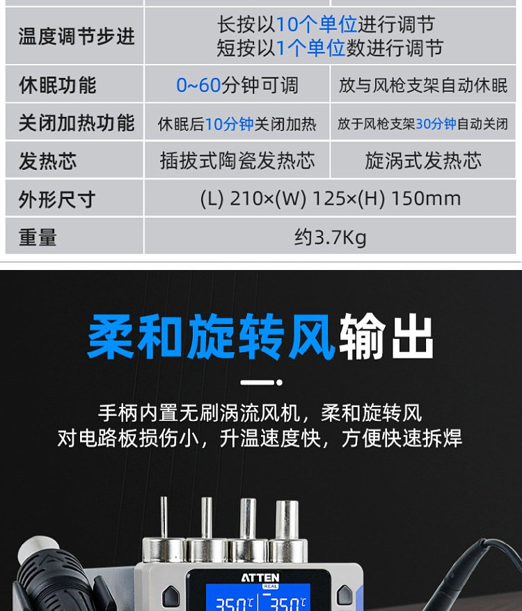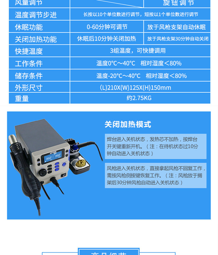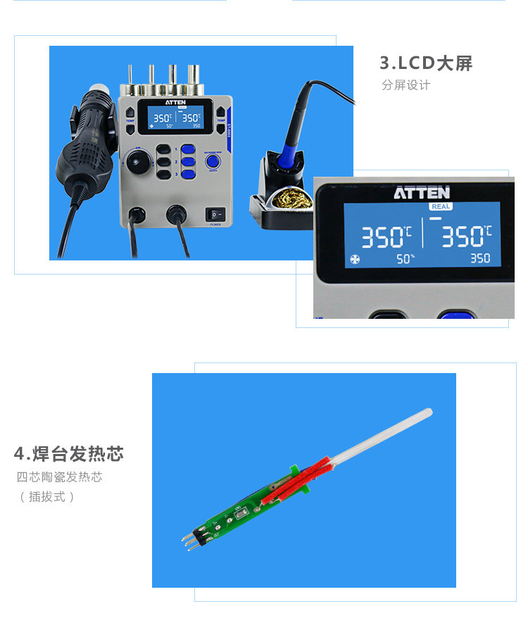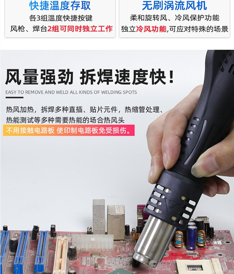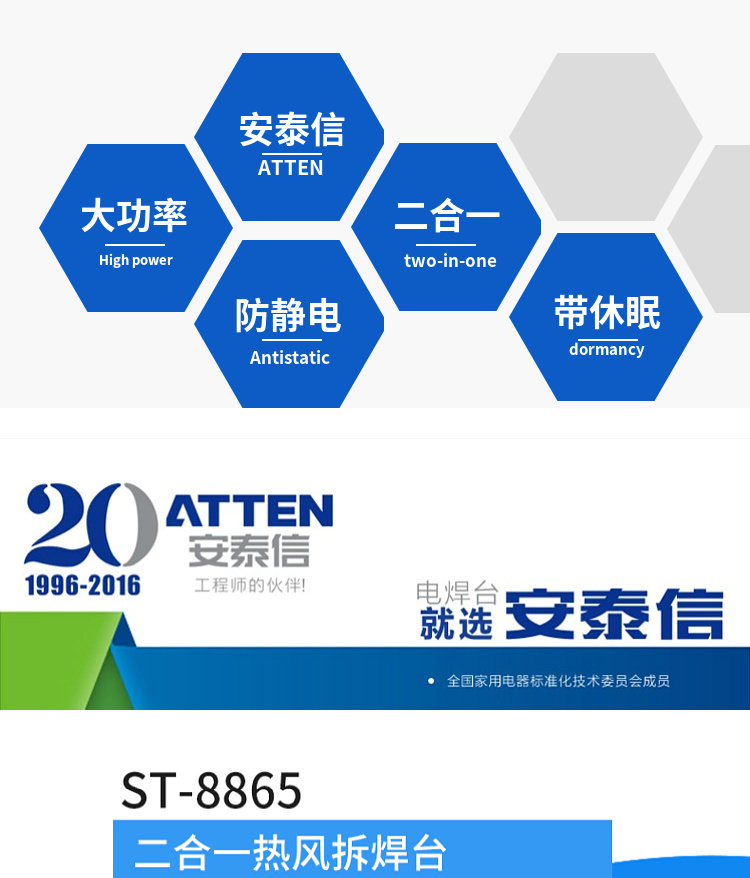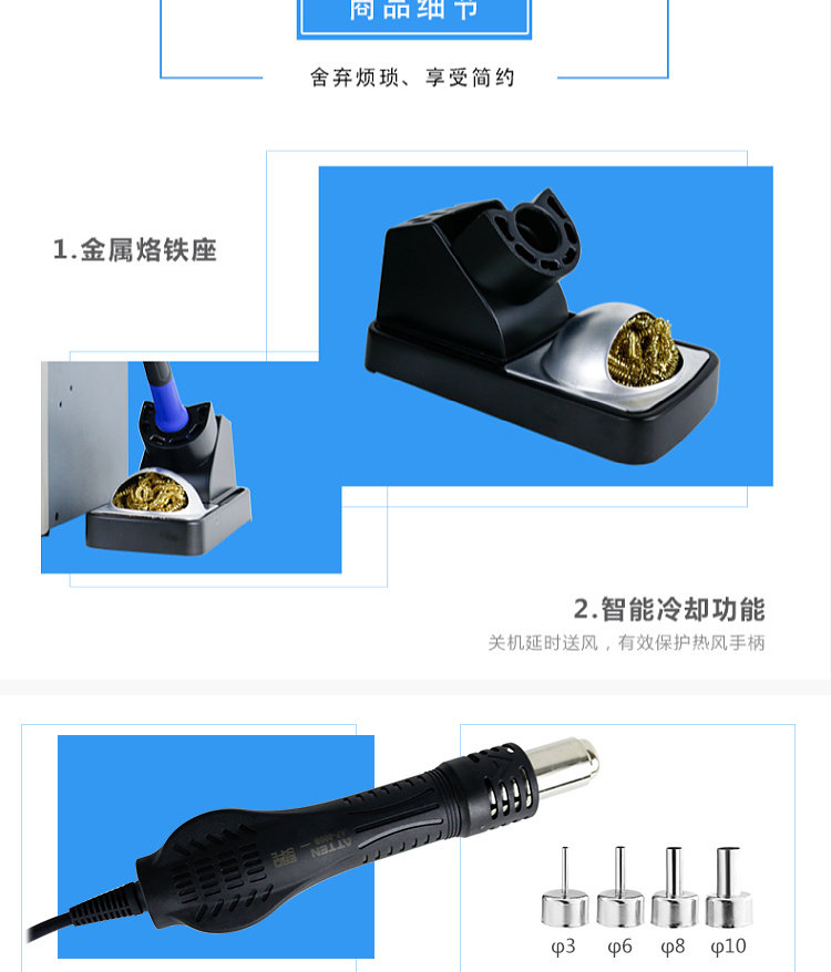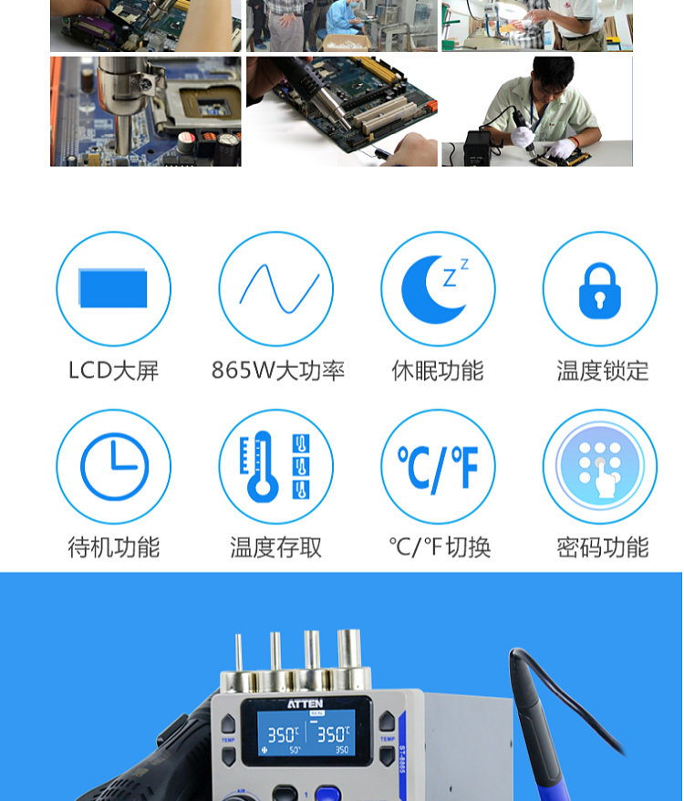 Antaixin ST-8865 Двухцелевое число, показывающее платформу сварки с горячим воздушным оружием электрический паяльный железо с двумя в-температуру и неактивная высокая мощность