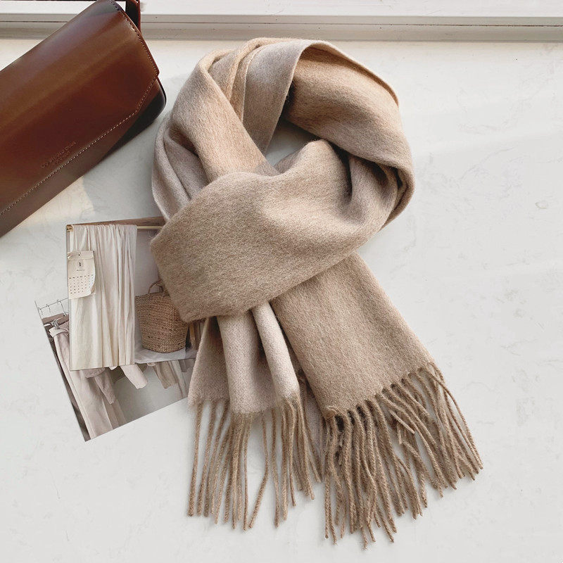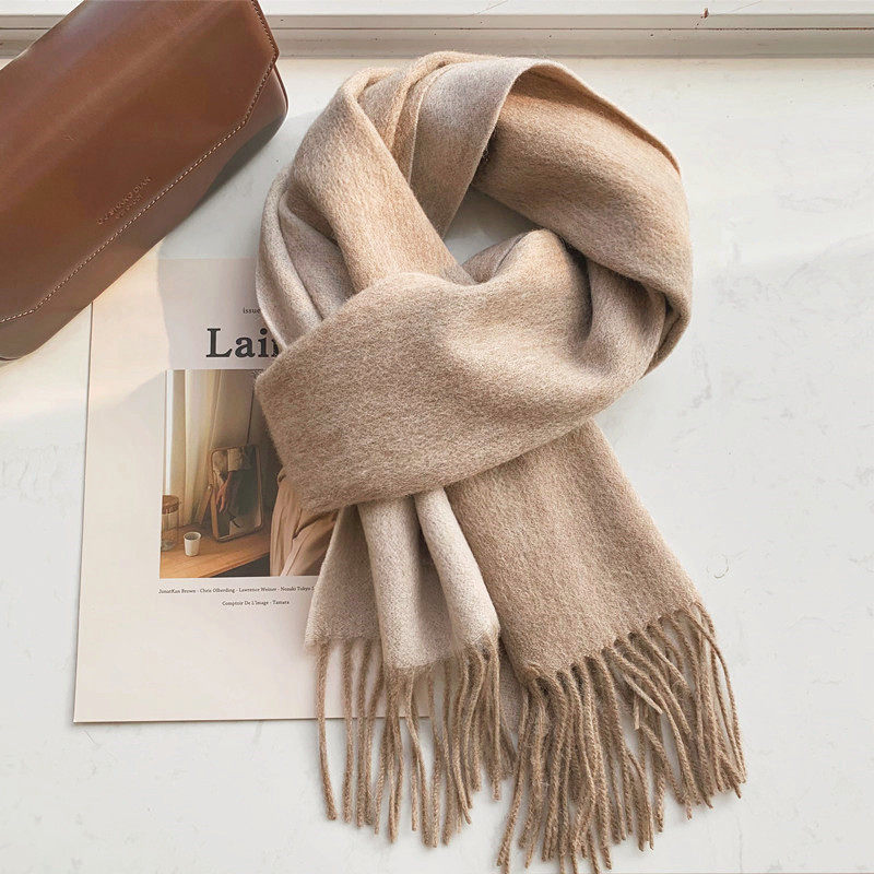 Двусторонное желтовато-коричневое очищающее молочко, зимний шарф, шерстяная модная зимняя универсальная удерживающая тепло накидка, в западном стиле, увеличенная толщина