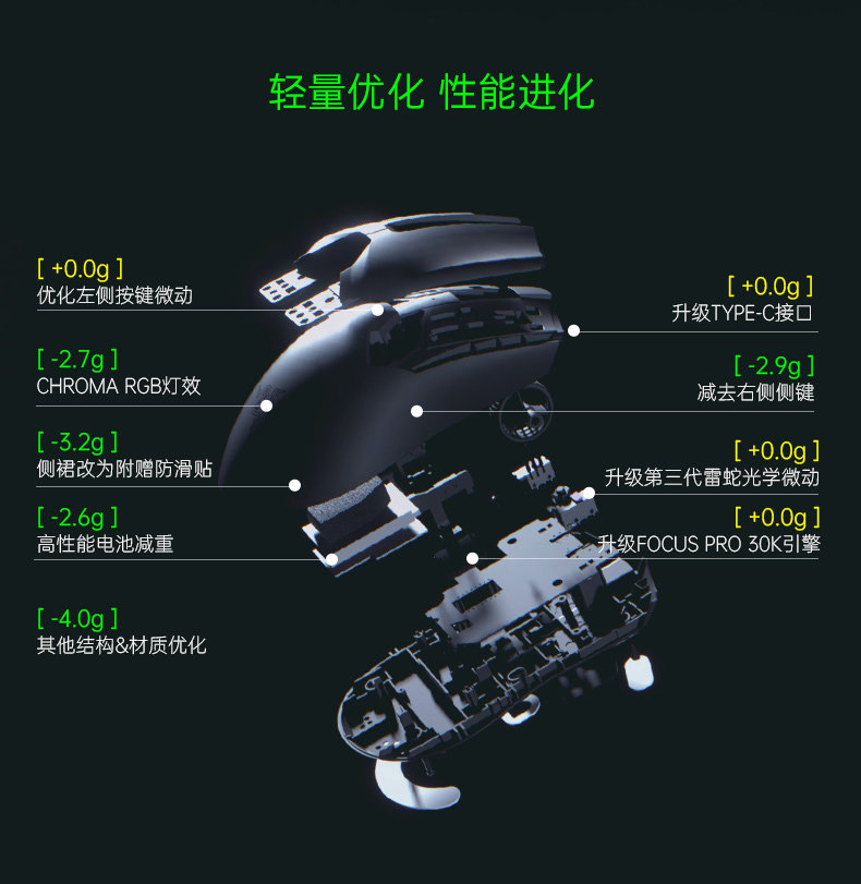 Razer Razer Poison v2 Professional Pro Wireless Game Mouse Mouse Light Merit E -Sports Computer CSGO едой курица