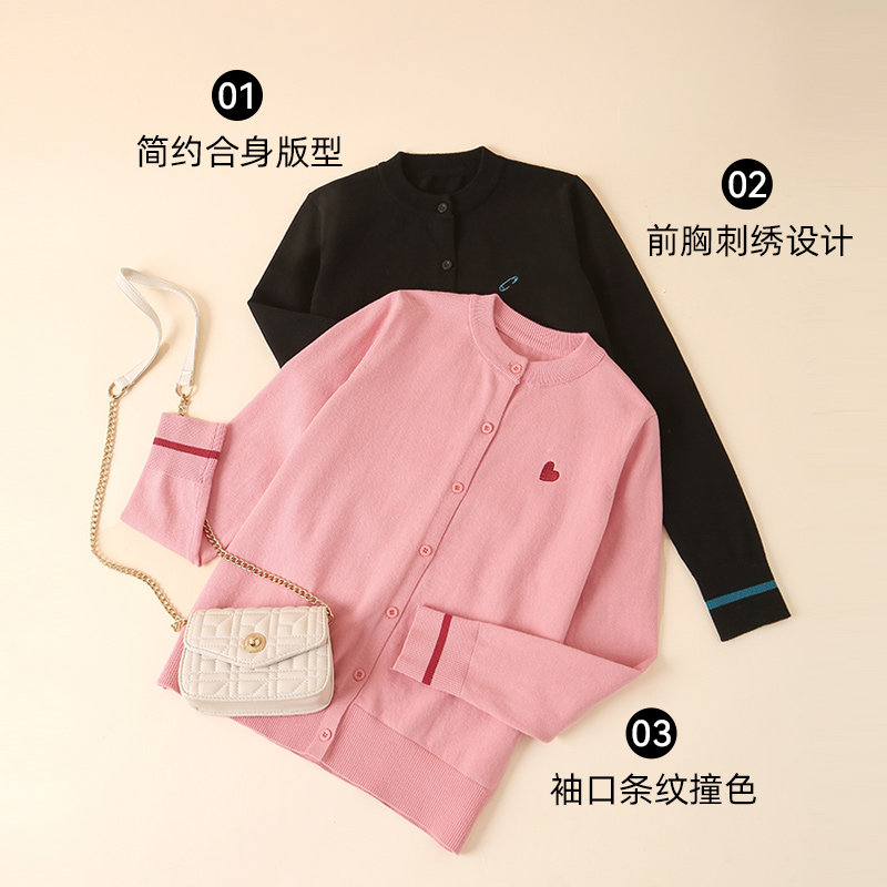 Трикотажный осенний свитер с круглым воротником, черный лонгслив, кардиган, оверсайз