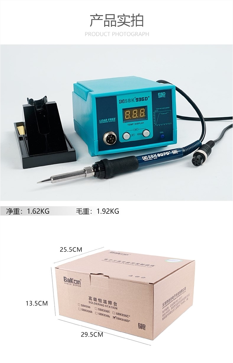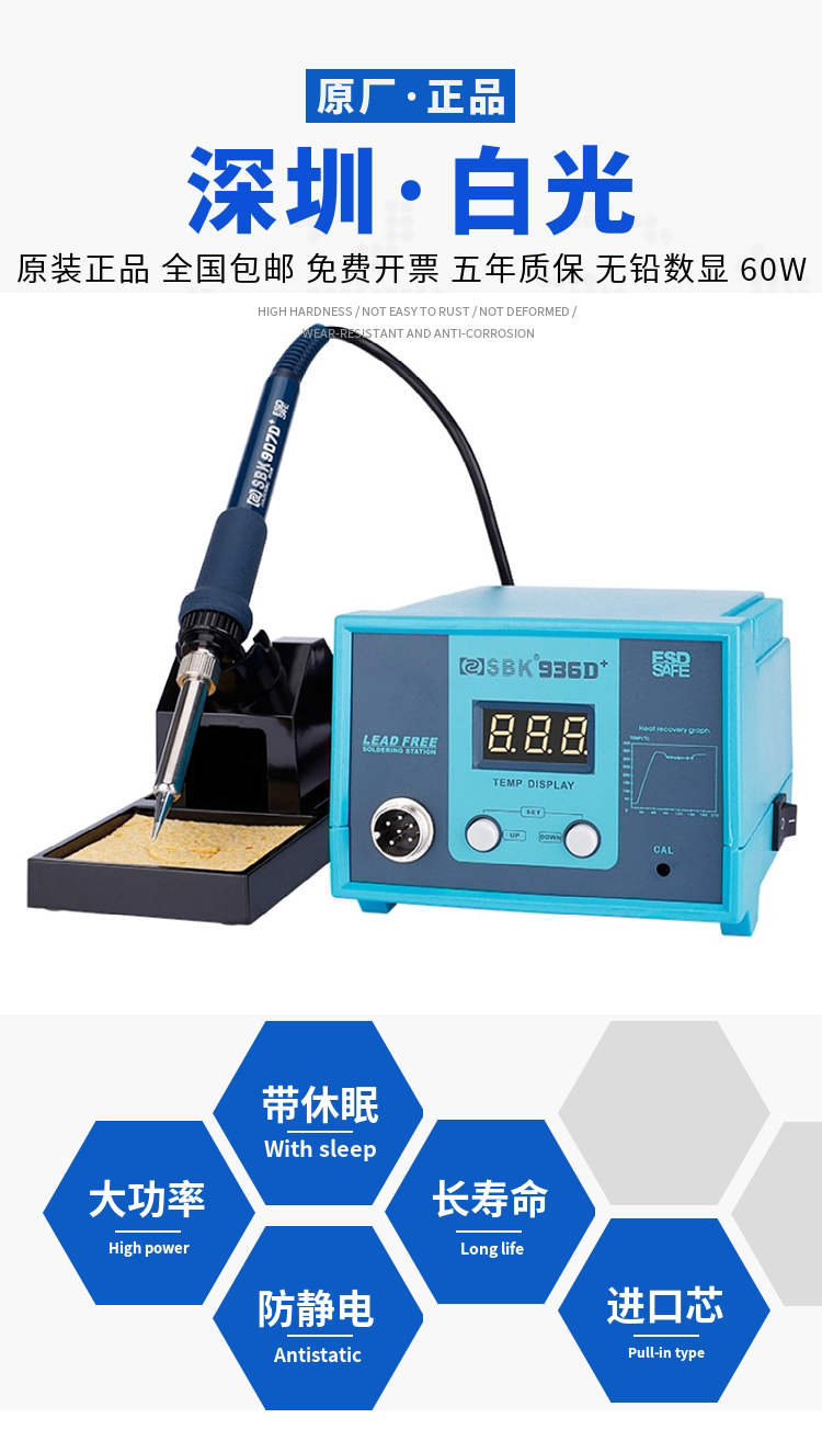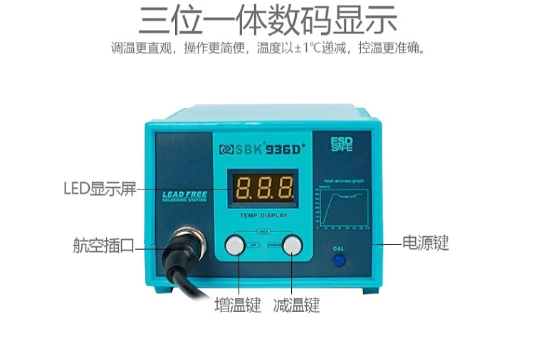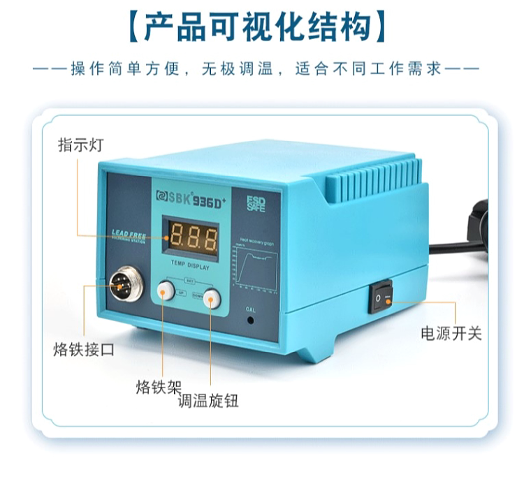 Белый свет цифровой дисплей Постоянный температурный сварка станция SBK-936D+Интеллектуальная беспроводная температура, регулирующая сварка, 60 Вт антистатическая паяльная сон железа