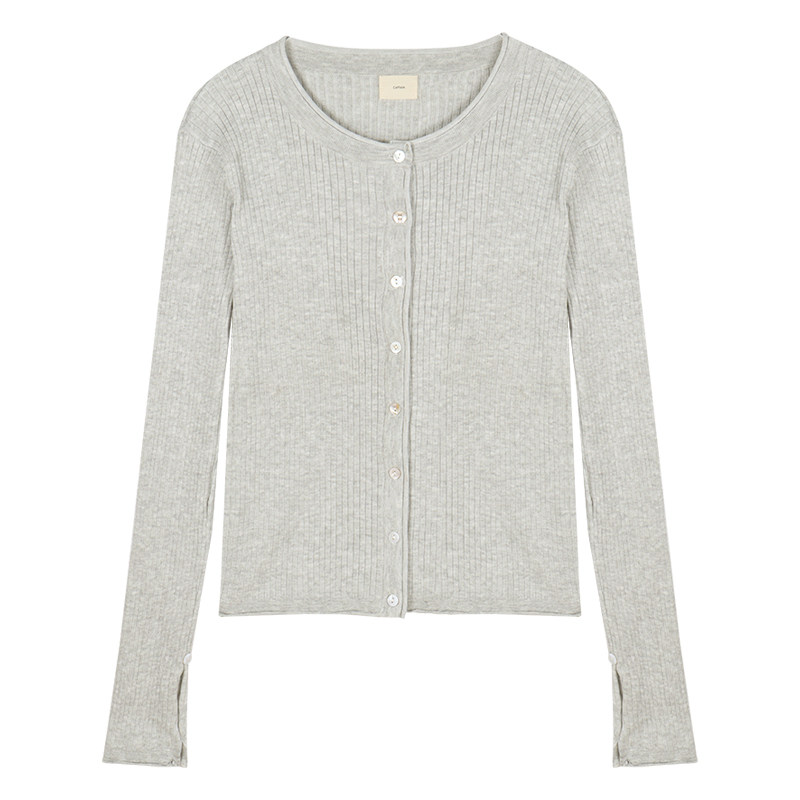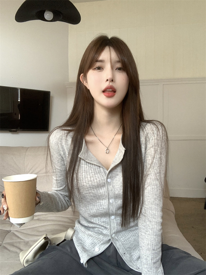 Трикотажный короткий приталенный кардиган, базовый лонгслив, осеннее термобелье, в корейском стиле