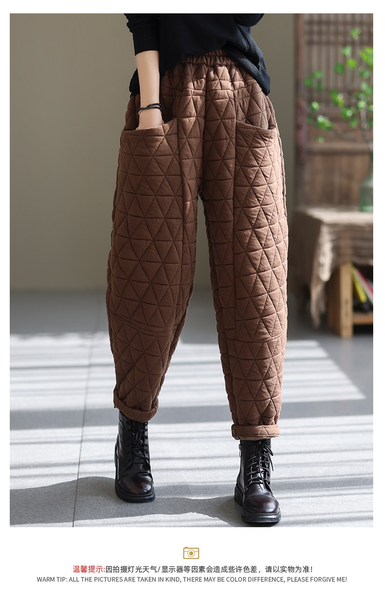 Стеганые зимние ретро штаны для отдыха, Италия, увеличенная толщина, свободный крой, по фигуре