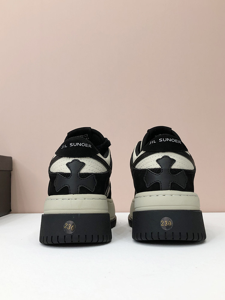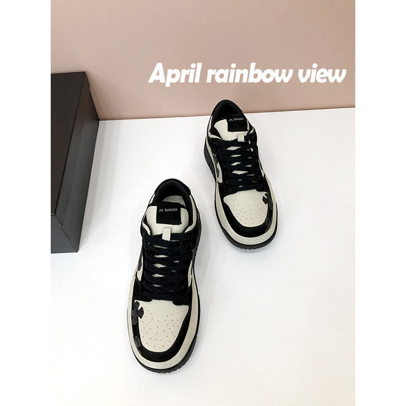 【move】Новые ~ интернет-знаменитости, черно-белая панда, европейские стоячие туфли, белые туфли на толстой подошве с перекрестной звездой для женских повседневных видов спорта