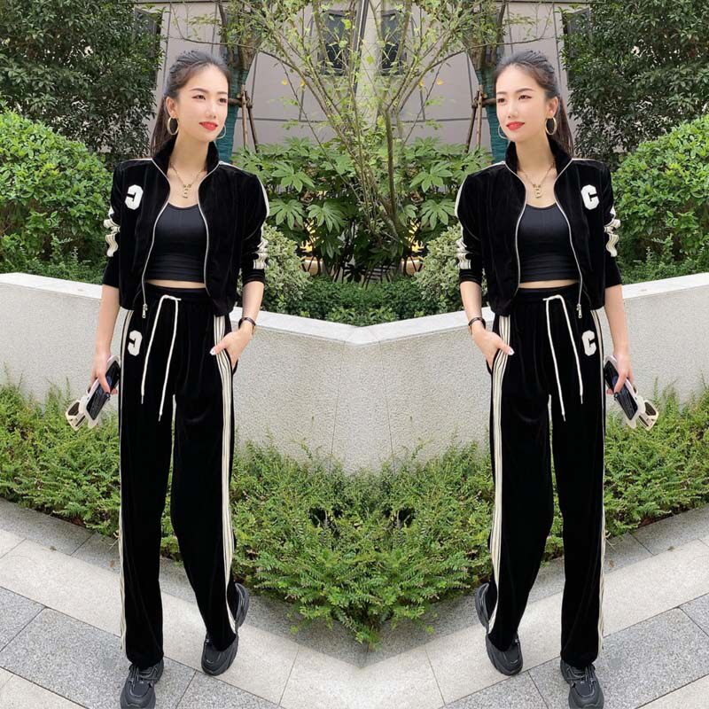 Демисезонная спортивная бархатная куртка для отдыха, комплект, штаны, европейский стиль, свободный прямой крой