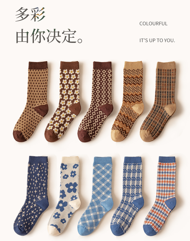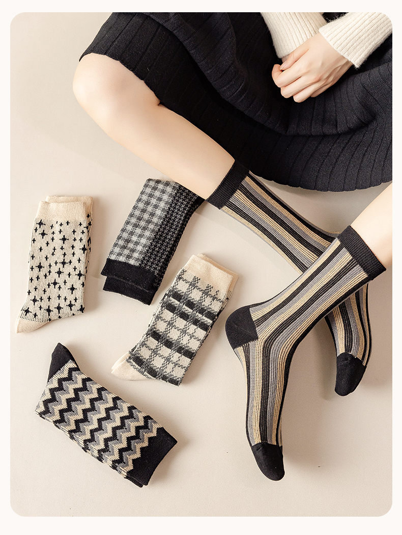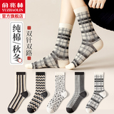 Tide, носки, демисезонные хлопковые осенние ретро черные гольфы, средней длины