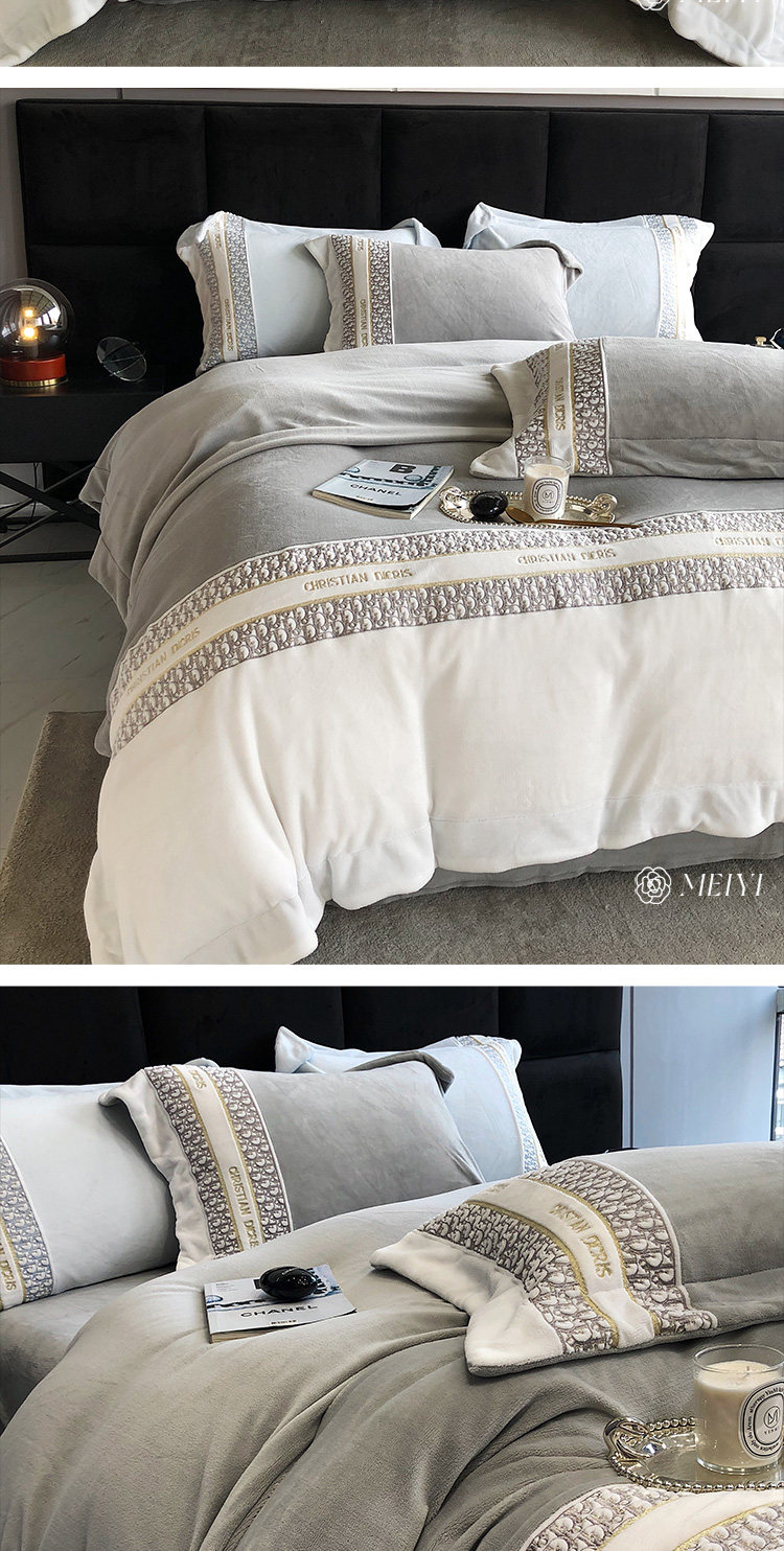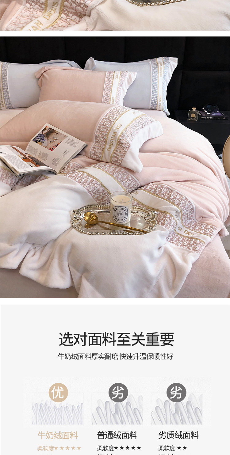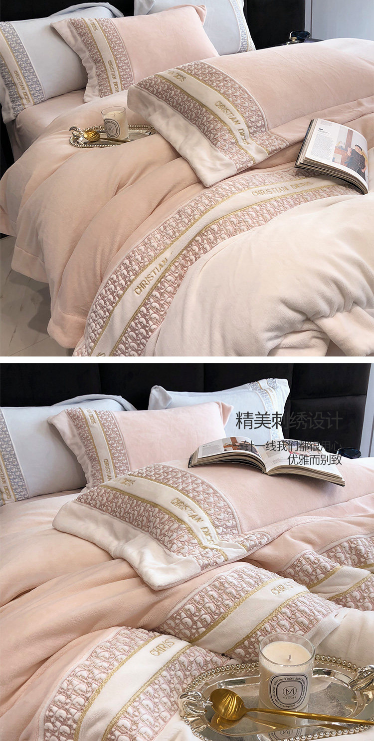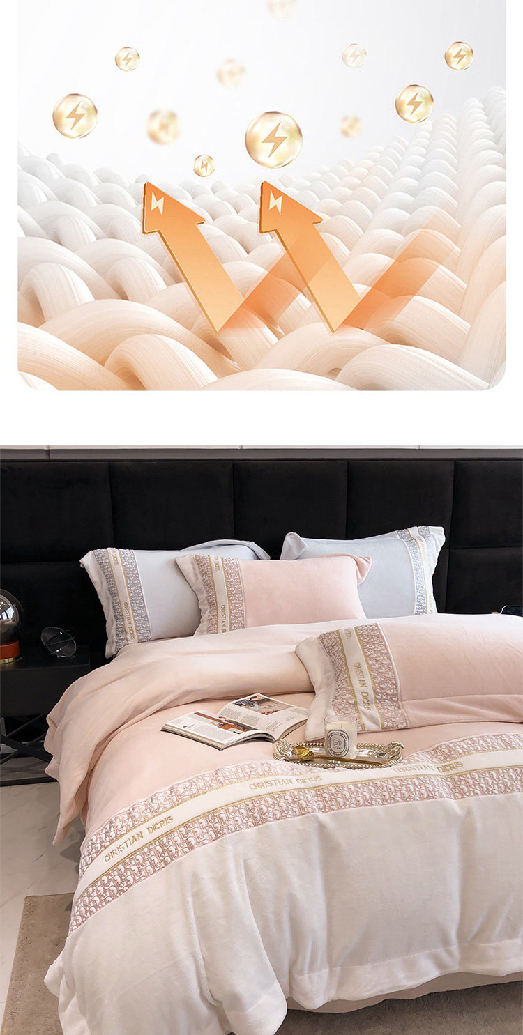 Демисезонный коралловый антистатический комплект, 4 предмета, изысканный стиль, с вышивкой, постельные принадлежности