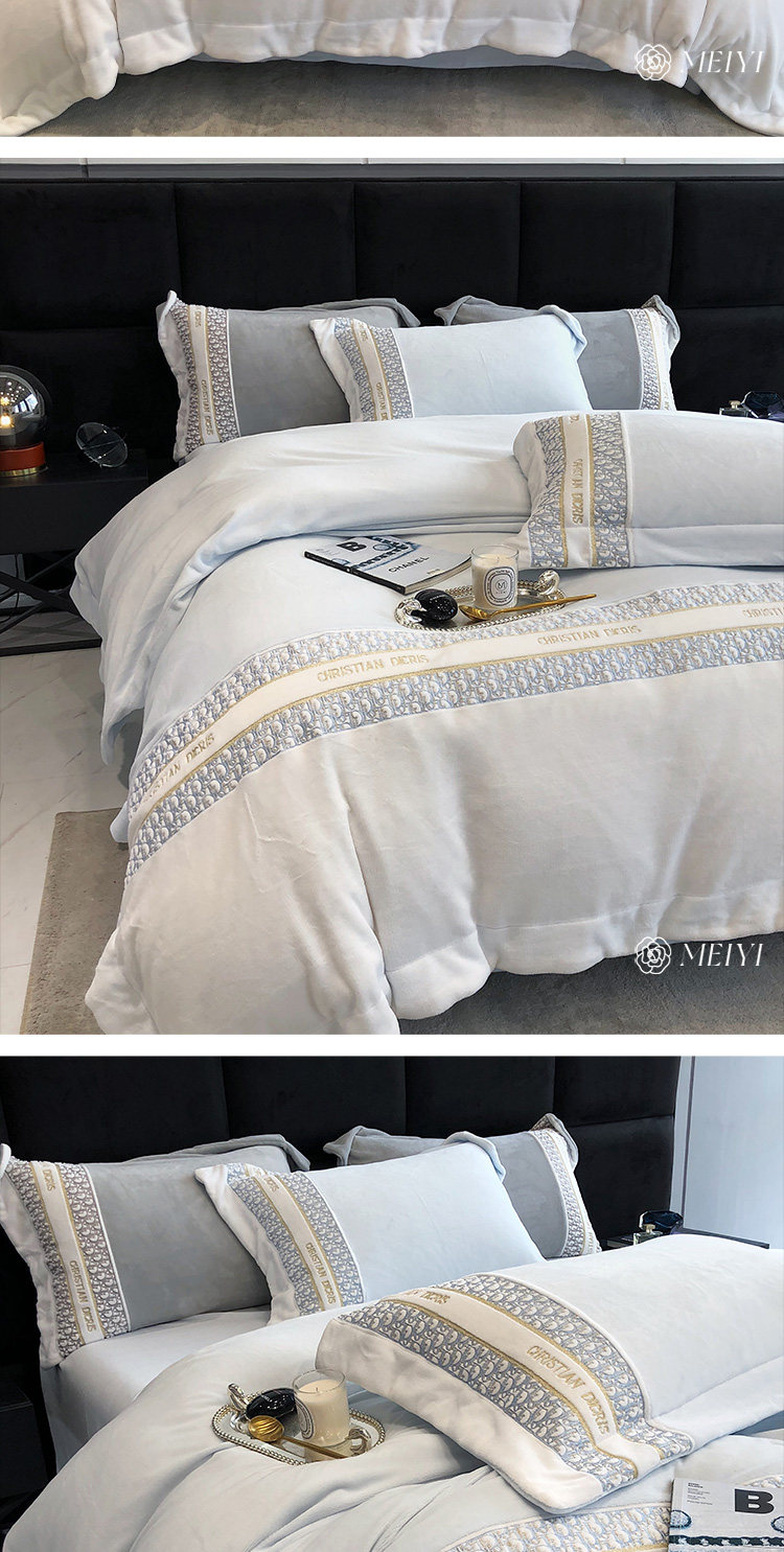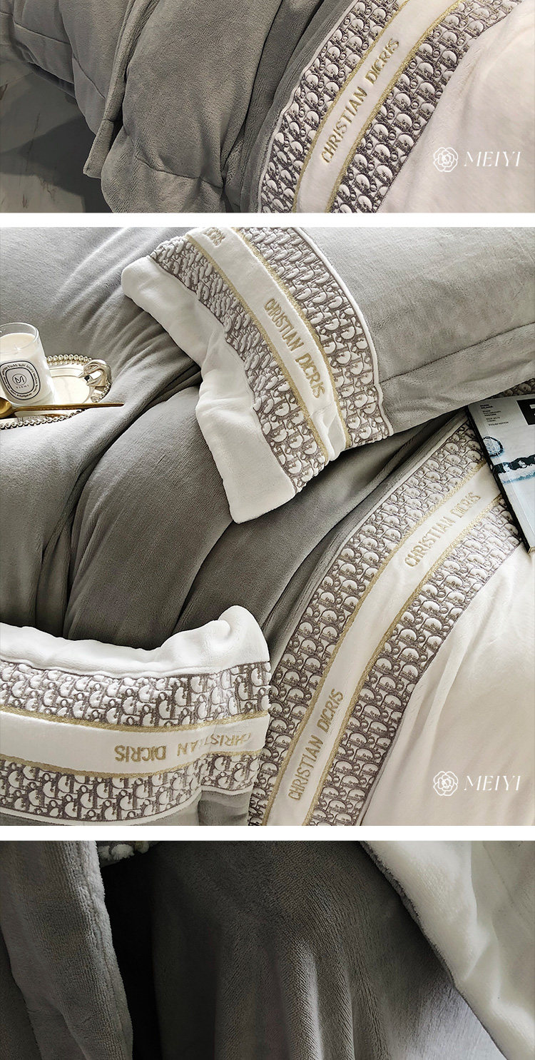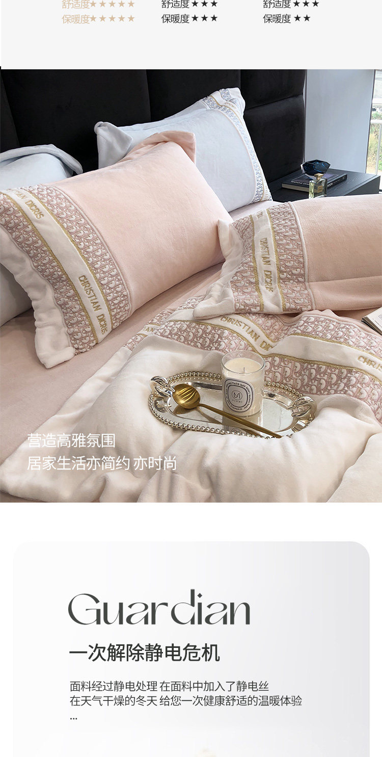 Демисезонный коралловый антистатический комплект, 4 предмета, изысканный стиль, с вышивкой, постельные принадлежности