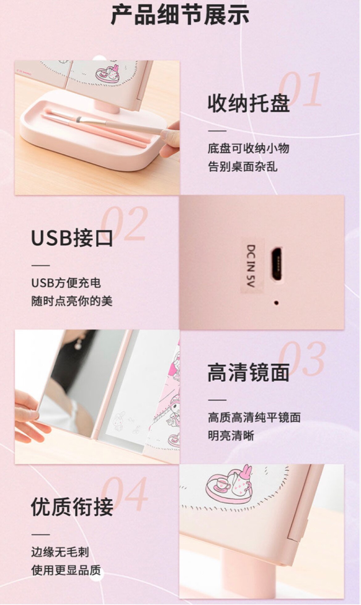 Miniso, sanrio, складное настольное зеркало