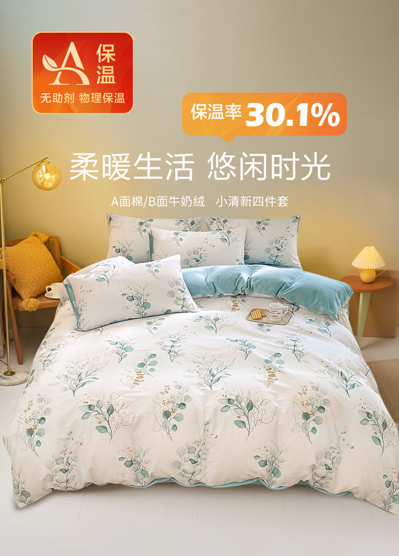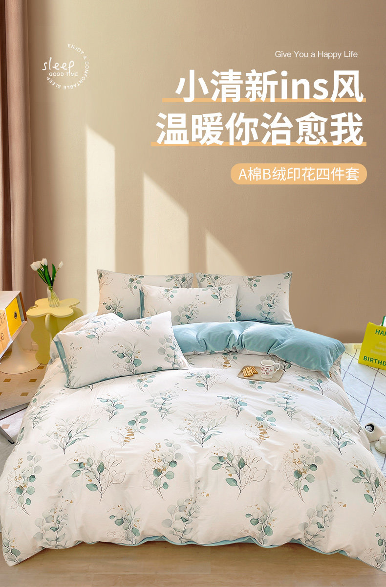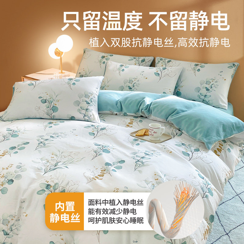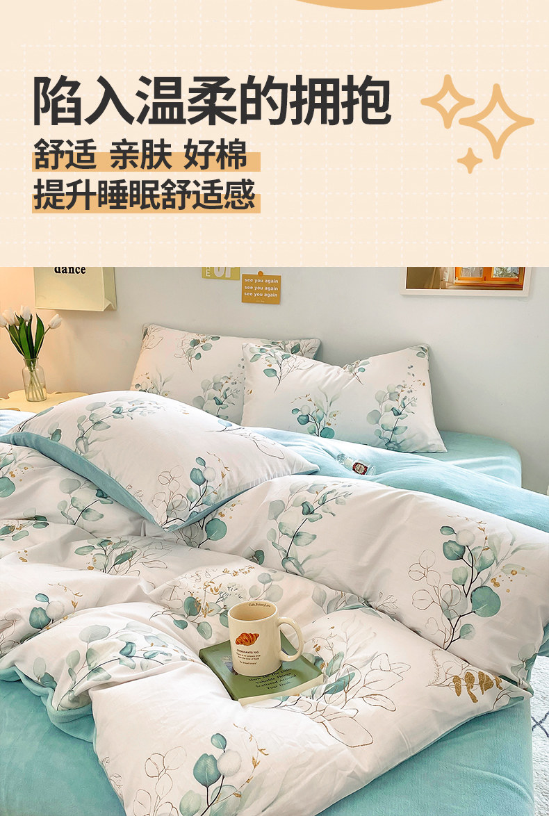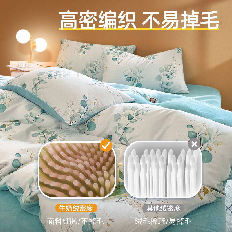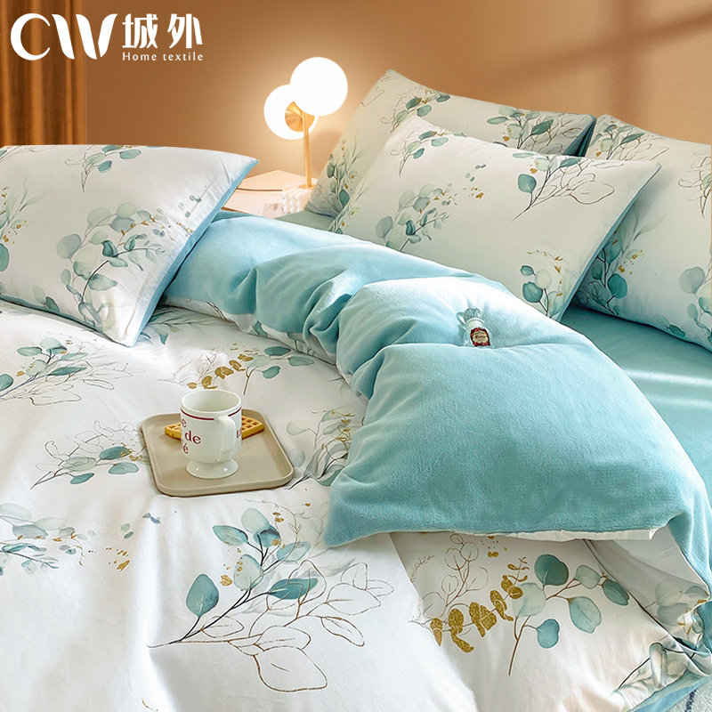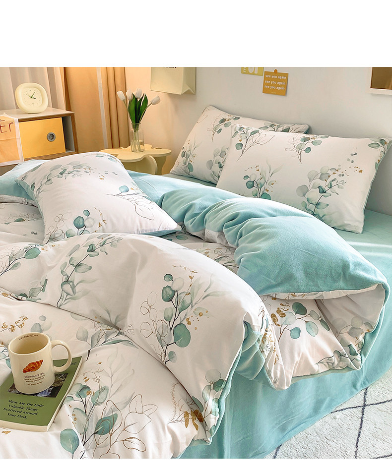 Хлопковый коралловый комплект, пододеяльник, фланелевая простыня, покрывало, увеличенная толщина, 4 предмета