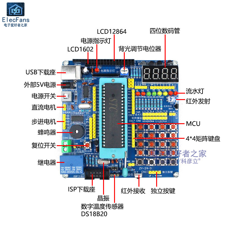| Цвет: | 51 Островая набор для разработки машины с одним, Кабель данных порта USB -t -типа длиной 1 метр длиной, DC, шнур питания, 3.5×1.35мм, USB-ISP загрузчик, DC5V 4 Фаза 5 Линия в мотор, DS18B20 Датчик температуры, Инфракрасный пульт дистанционного управления, LCD1602 LCD Blue Screen, LCD12864 ЖК -экран синий экран |
