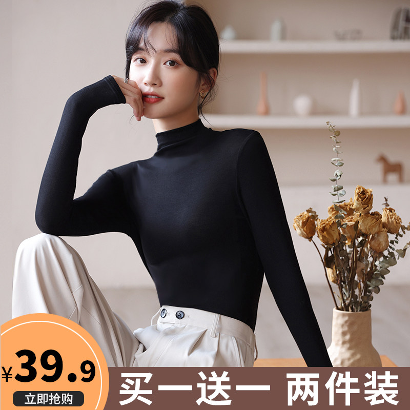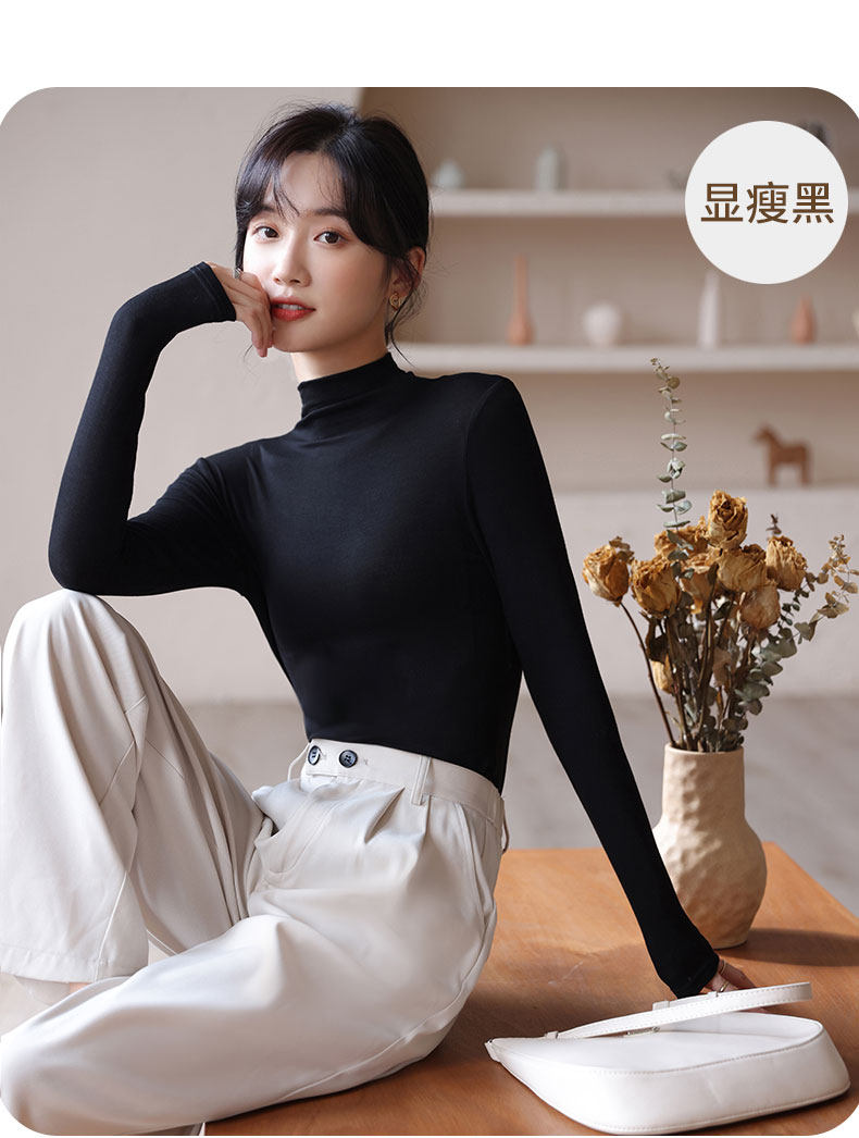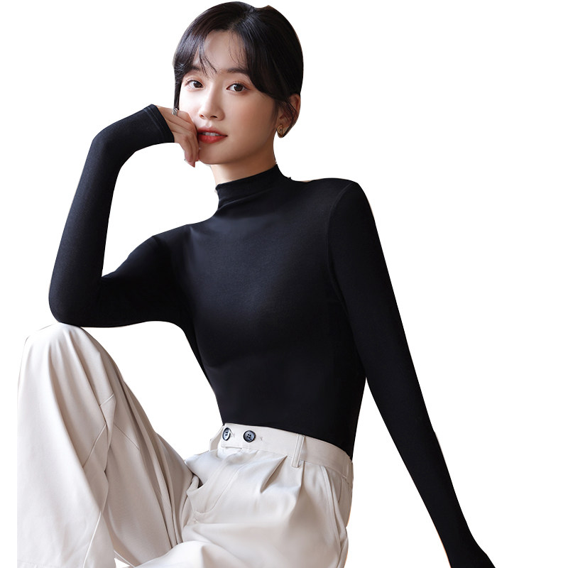 Черный цветной базовый приятный телу осенний демисезонный приталенный лонгслив, высокий воротник