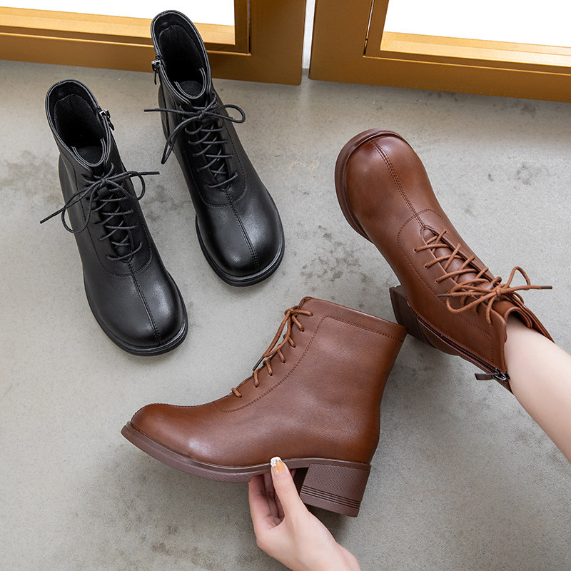 Martens, удерживающие тепло демисезонные комфортные сапоги для матери, из натуральной кожи, для среднего возраста