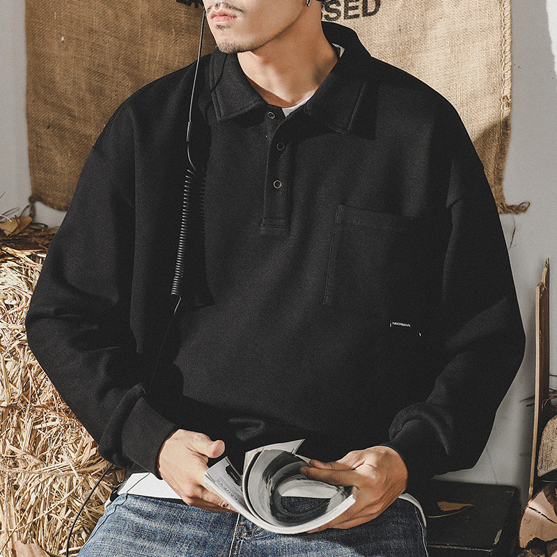 Tide, осенняя футболка polo, рубашка, хлопковый лонгслив, в американском стиле, оверсайз