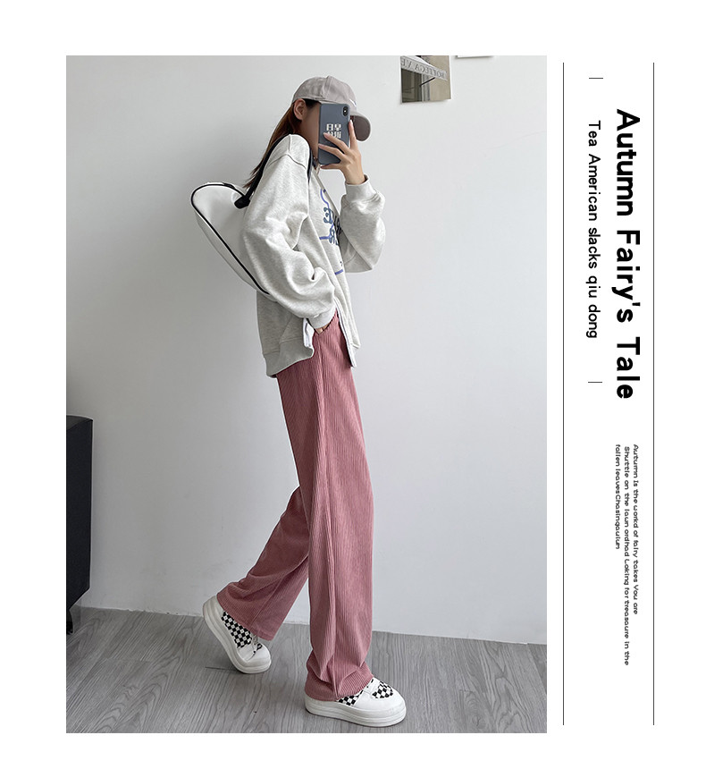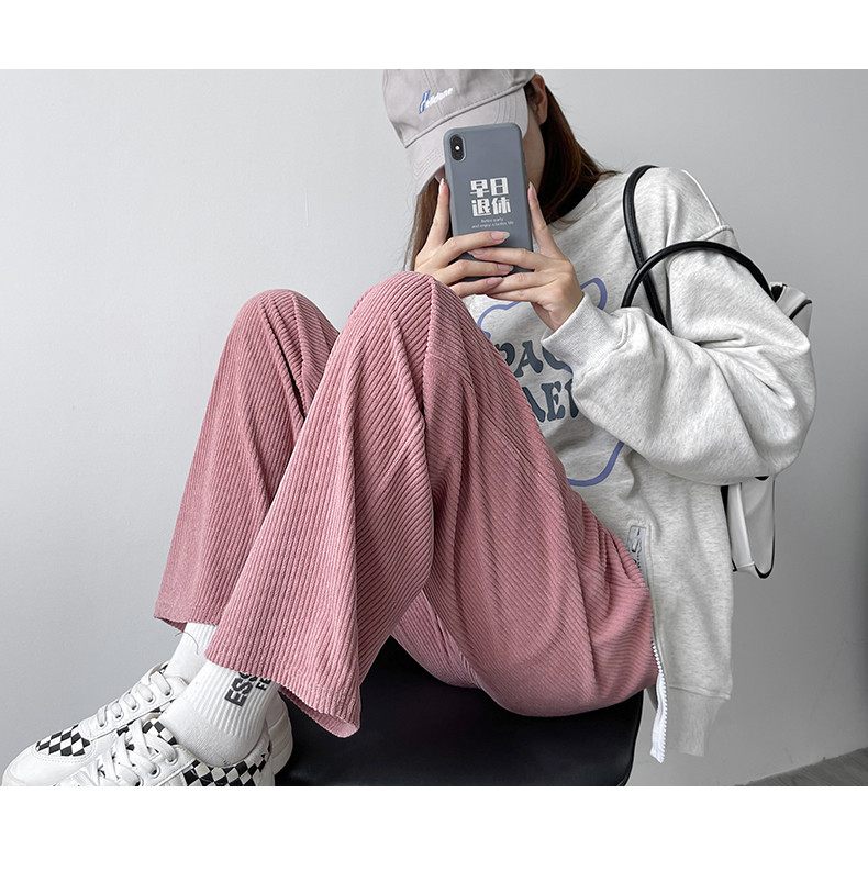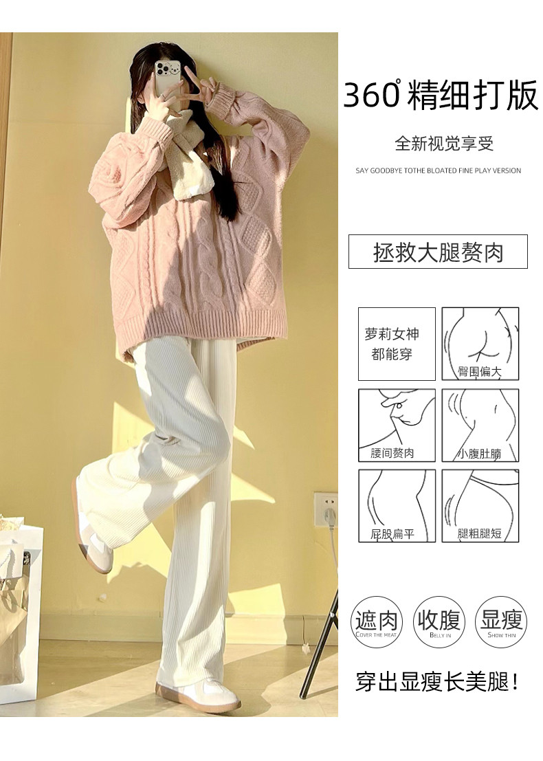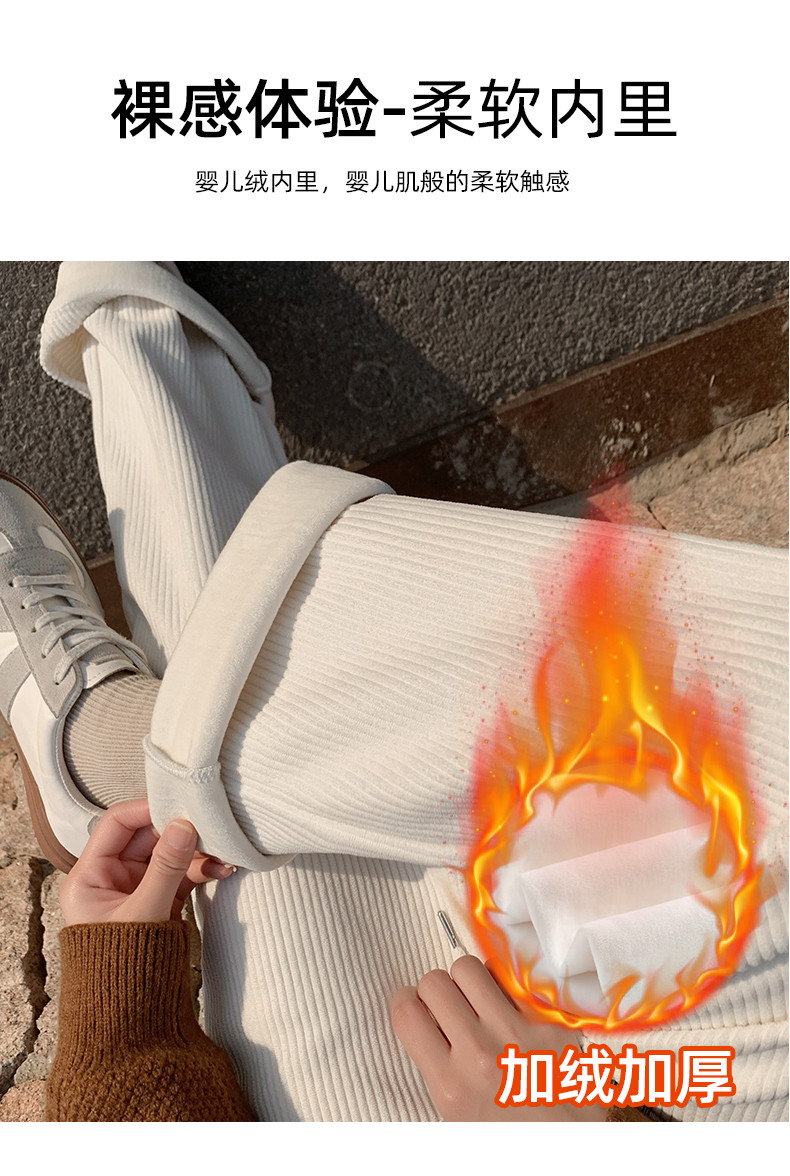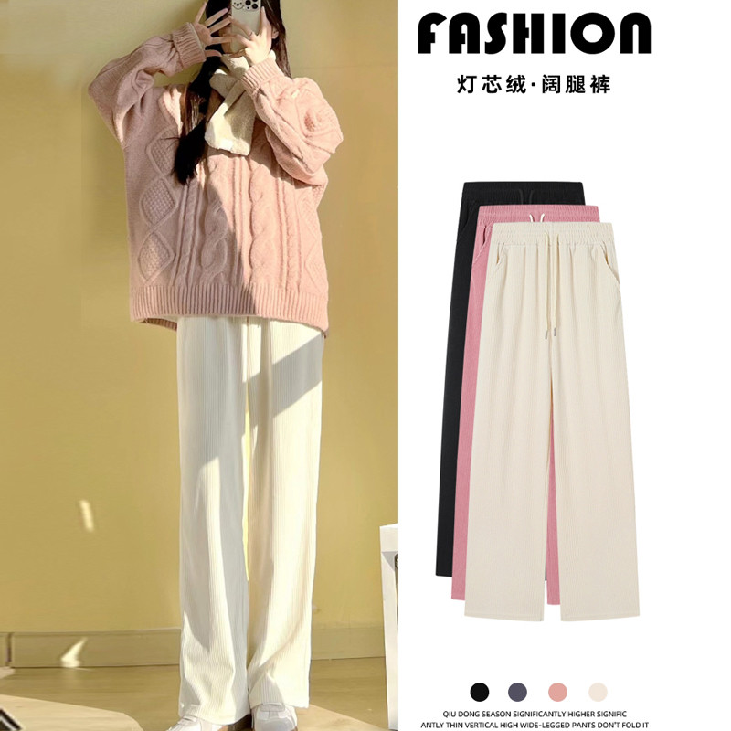 Белые вельветовые осенние трикотажные штаны, коллекция 2022, высокая талия, свободный прямой крой