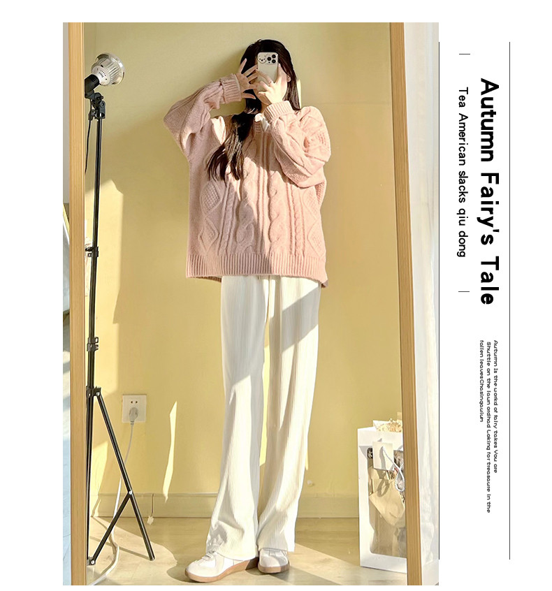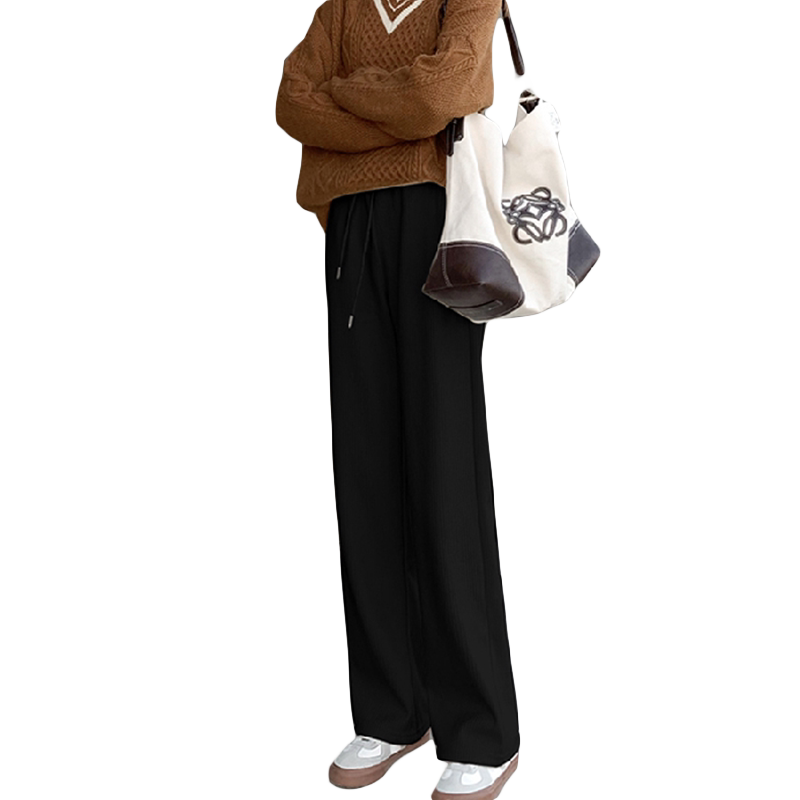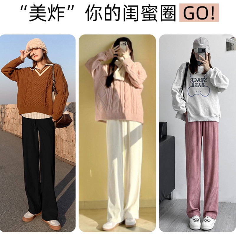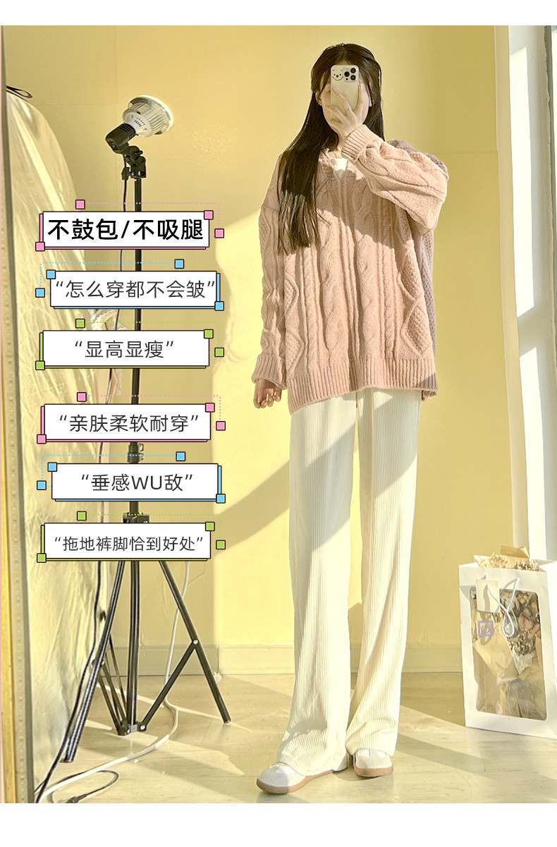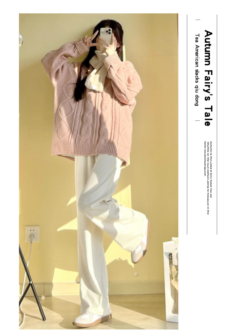 Белые вельветовые осенние трикотажные штаны, коллекция 2022, высокая талия, свободный прямой крой