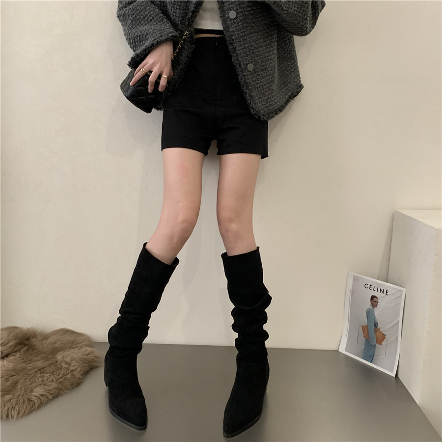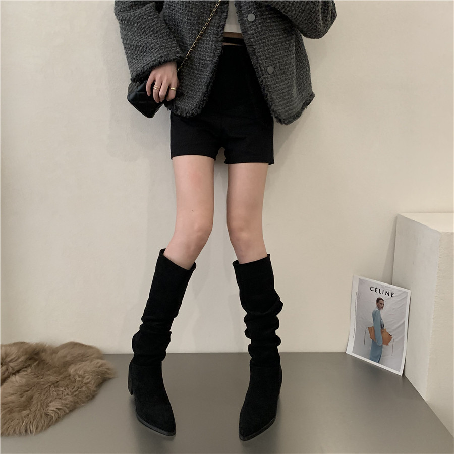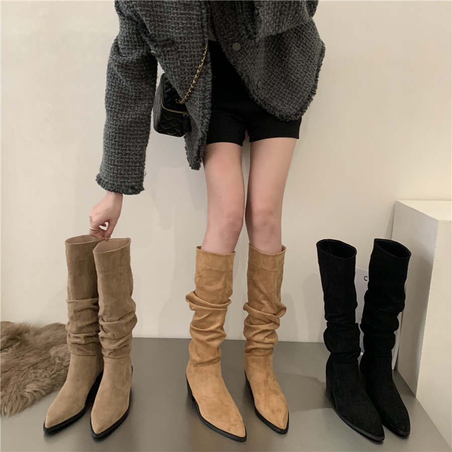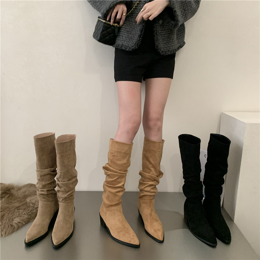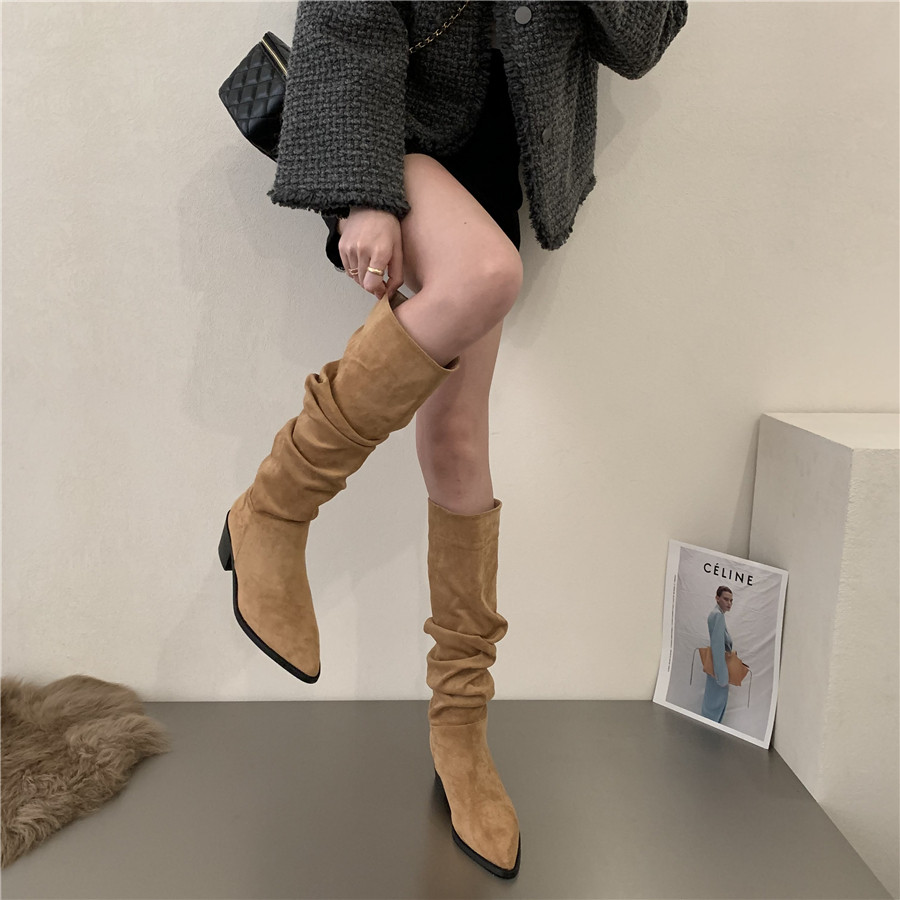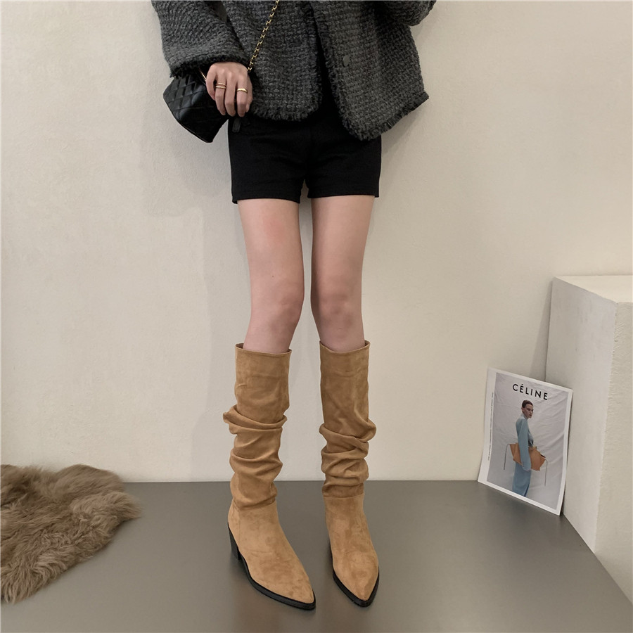 Коричневые джинсовые хаки высокие сапоги, французский стиль