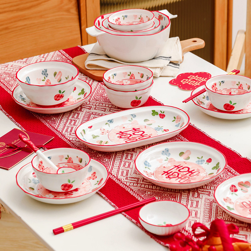 Красная посуда, керамический праздничнный комплект, подарок на день рождения, коллекция 2023